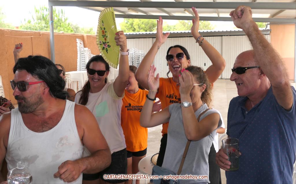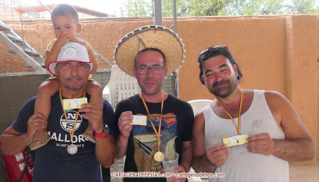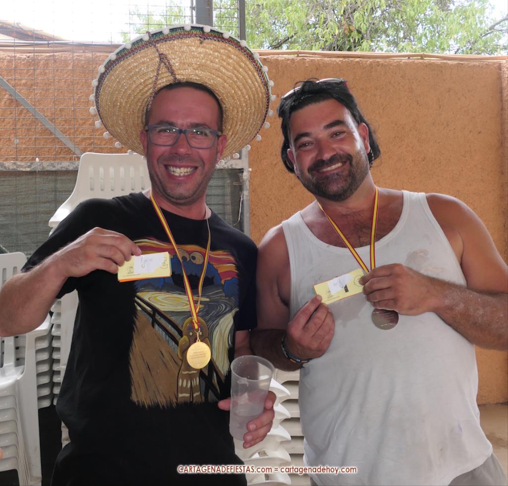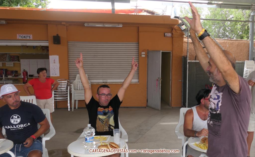 El reto es quien come más hamburguesas que se anuncian que son de 'padrón, porque unas picas y otras no', pero en las que en realidad el picante es para todas. Tres, dos, uno... ¡A comer! Son siete aspirantes, pero algunos se encuentran que la empresa es más complicada de lo que pensaban y apenas avanzan, mientras que hay tres concursantes en un lateral que van muy bien y que terminan siendo los mejores comilones, resolviendo el orden las patatas que han dejado en sus respectivos platos. Damián y Chanete, quienes son compañeros en la peña 'Los chingones molineros', han quedado empatados y comparten los dos primeros premios, que son 50 euros en consumisiones para el vencedor y 30 euros para el subcampeón, además de sendas medallas. Tercero ha sido Juan, de 'Los molineros', quien se marcó un ritmo propio de principio a fin y, aunque parecía que los dos primeros le superaban con cierta claridad, lo cierto es que al final no era así. Se llevó 20 euros en consumisiones durante las fiestas y medalla de bronce.