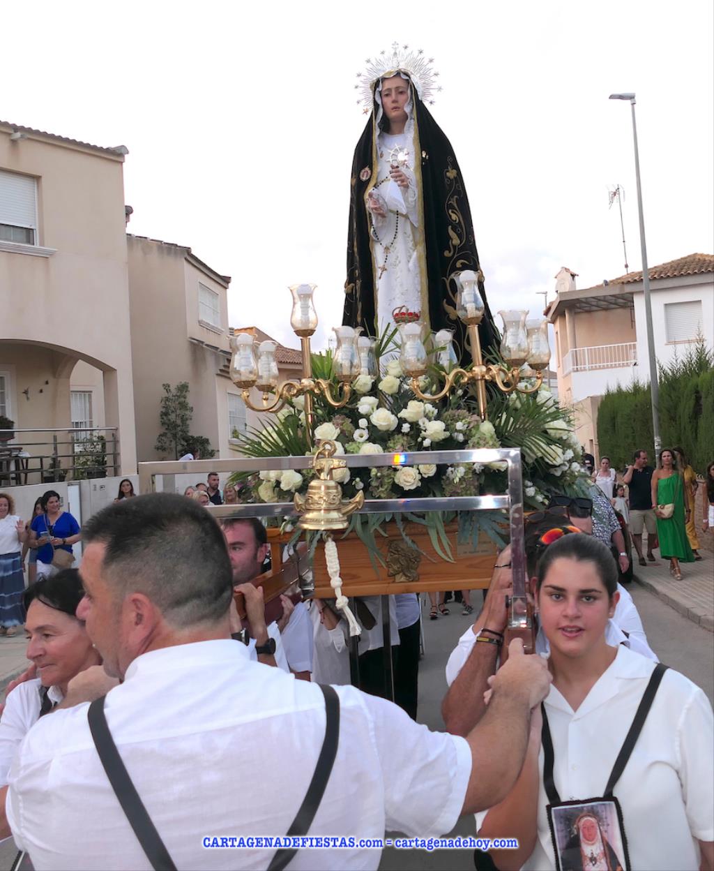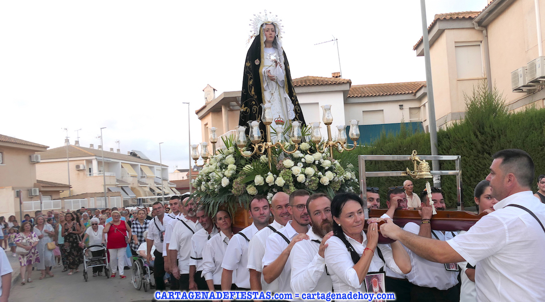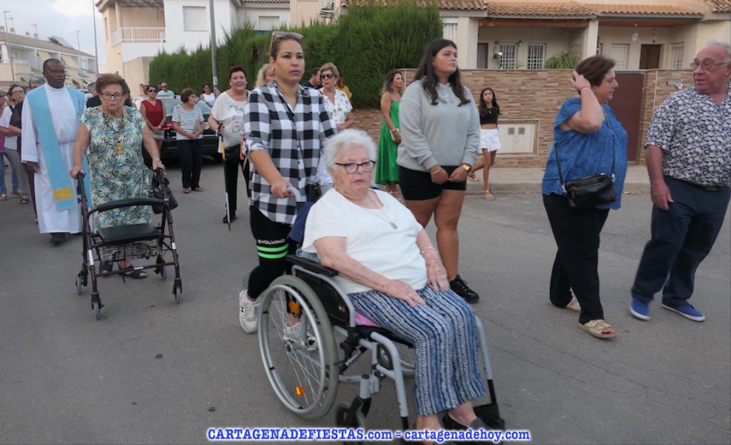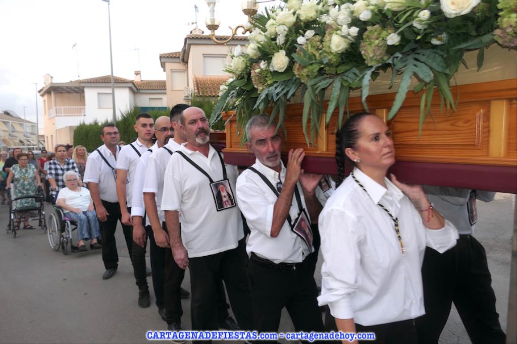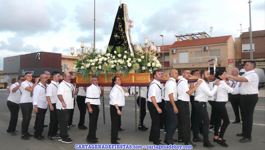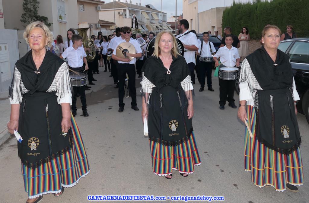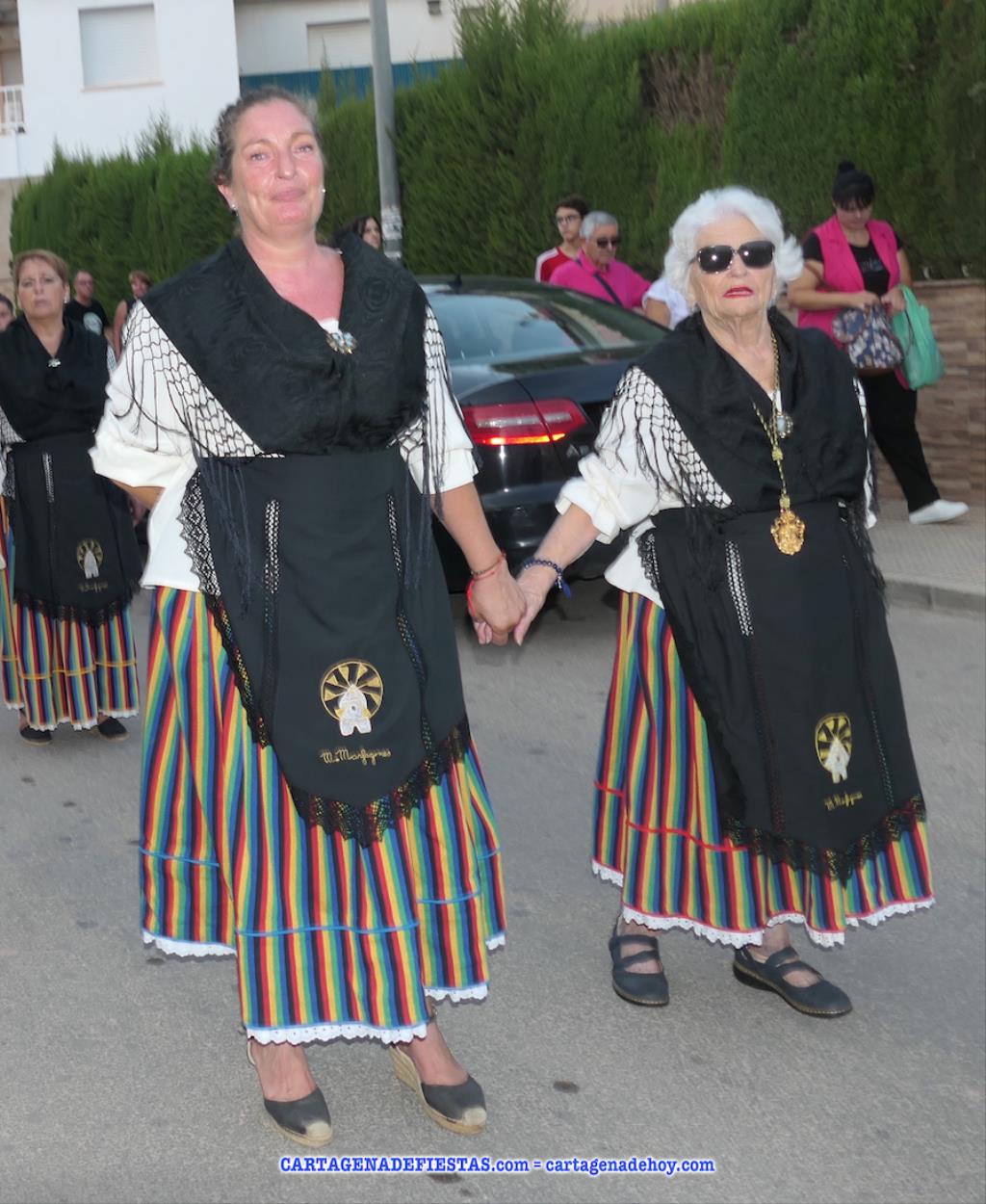 Vayamos ahora la procesión, donde el grupo de 16 costaleros llevó a la patrona en una comitiva en cuyos primeros lugares lucían los tradicionales hombres con vestuario de faena molinero y las mujeres de bonitos y coloridos ropajes de época. La verdad es que dan mucho colorido a este cortejo. El capítulo musical corresponde a la agrupación musical local, que lleva el nombre de la patrona. También destacar la presencia de varias decenas de devotos que han estado con la imagen desde la salida hasta la jubilosa recogida, en la que han sonado los himnos de Molinos Marfagones y de España, además de ser elevado el trono '¡al cielo!'. Después, con el baile amenizado por el grupo 'Piku' en el recinto festero, las fiestas patronales han puesto del broche a una buena y revitalizada edición.