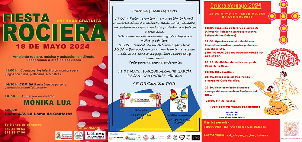 La actividad social de ocio va mucho más de 'La noche de los museos' en el territorio cartagenero este fin de semana, pues también hay fiestas en Pozo Estrecho, cruces de mayo en Los Dolores, Nueva Cartagena y La Loma del Albujón, semanal cultural en Galifa, procesión en Barriada de Hispanoamérica, presentación de libro en el huerto de San Antón, gala 'Ellas', ruta de la tapa en La Palma, jazz en el Casino de Cartagena...