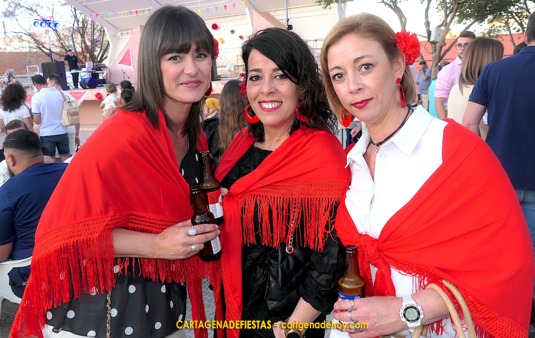 El lugar para celebrar la 'Cruz de mayo' fue la emblemática plaza de la Virgen de los Dolores, que preside uno de los mejores escenarios exterior de la periferia cartagenera y por el que fueron pasando buenas propuestas, casi sin parones, lo que facilitó el ambiente.