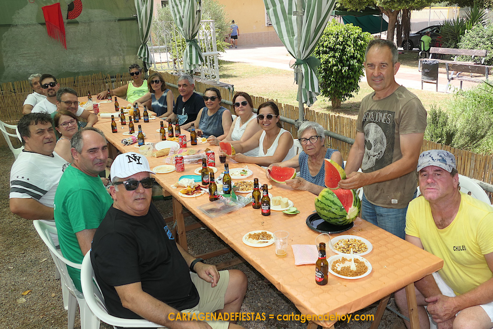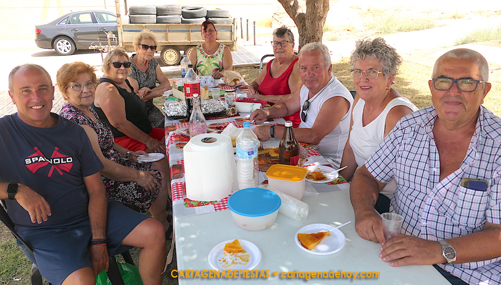 Unos lo tomaron en las mesas y sillas habilitadas por la comisión festera y otros optaron por hacerlo en grupo en las sombras de los árboles o en el interior de las casetas montadas por las peñas.