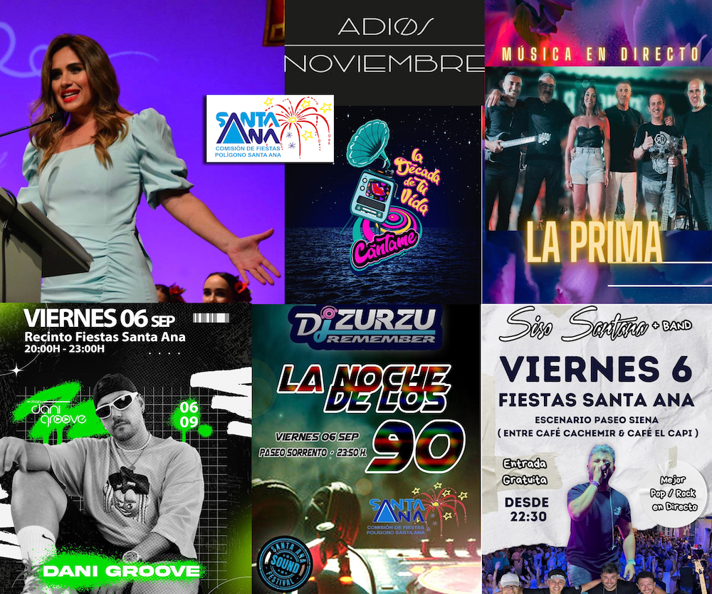 Comienzan las fiestas en el Polígono Santa Ana (desfile, el pregón de Nazaret Navarro, la entrega de distinciones y las primeras actuaciones musicales) y en José María de Lapuerta (batucada, pregón de Adela Acosta, elección de la corte real y actuación de 'Partiendo la pana'). En La Aparecida hay atracciones infantiles y trovos.