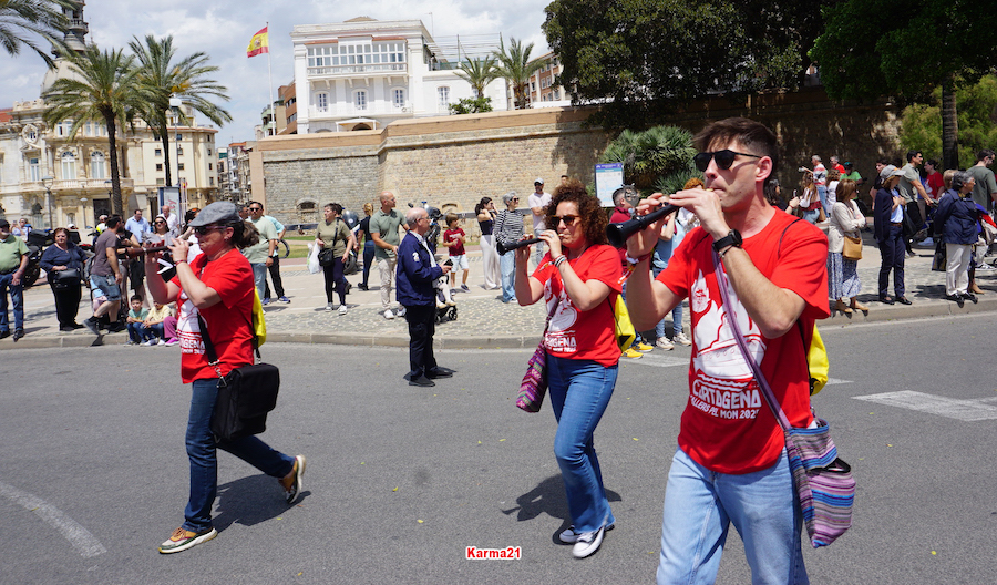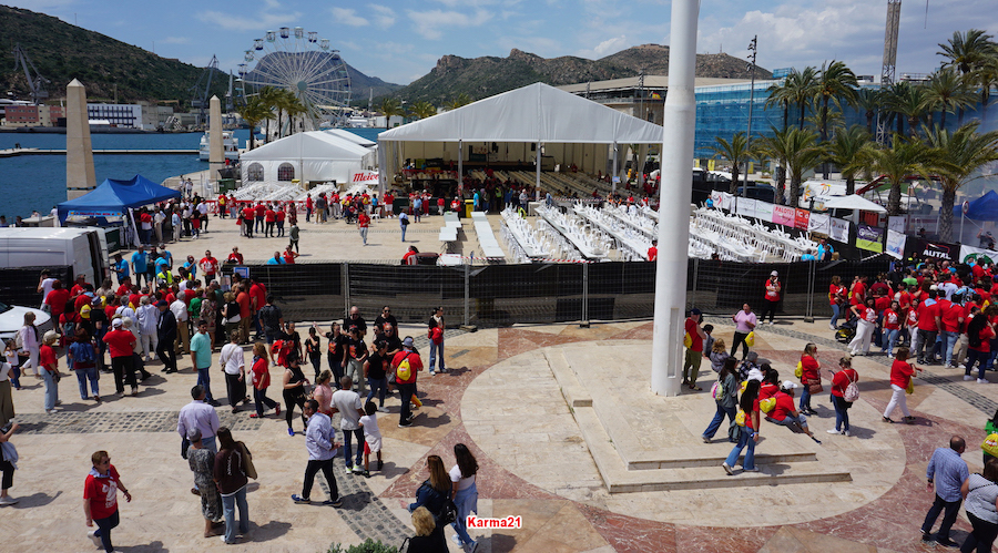 Miles de valencianos han llegado a Cartagena y, como algunos apuntan, el ambiente se parece al de los grandes desplazamientos de aficiones de fútbol cuando su equipo juega una final o un partido decisivo.