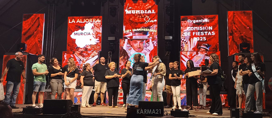Las fiestas de La Aljorra tuvieron un espectacular domingo noche con el gran encuentro de sartenadas para elaborar el tradicional plato gastronómico, la elección de mises y míster y el multivisual y sonoro show de 'La Mundial' en su 20 aniversario.