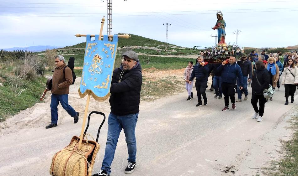 La patrona de El Cañar, la primera imagen de la Virgen que recibe honores cada año en el municipio de Cartagena, tuvo un enorme acompañamiento popular pese a la fría mañana en su tradicional romería enriquecida por los sonidos de las cuadrillas.