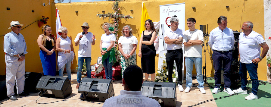 La asociación benéfica estrena la floreada fiesta en una finca sita junto a la ermita de Los Médicos, para la que ha iniciado una recogida de firmas para que sea BIC, y su presidente, Matías Barco, da a conocer a su nuevo equipo formado por 21 personas (foto superior) y algunos de los retos solidarios que se han fijado para los próximos meses en España y en Perú.