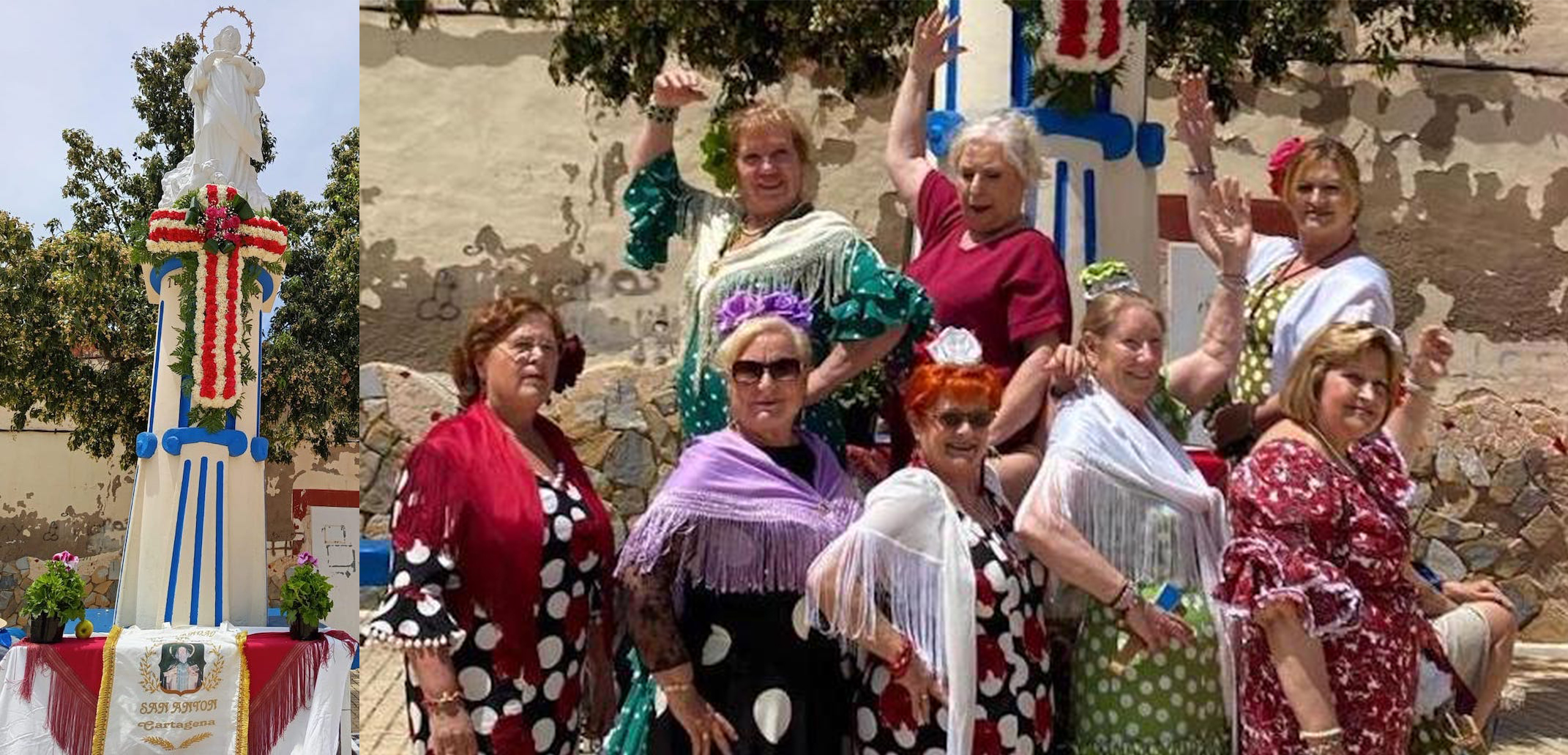 Las asociaciones de romeros y de vecinos organizaron, junto con el ayuntamiento, la cruz de mayo de la castiza villa cartagenera en la plaza de la Purísima, con actuación del coro rociero 'Mujeres alba'.