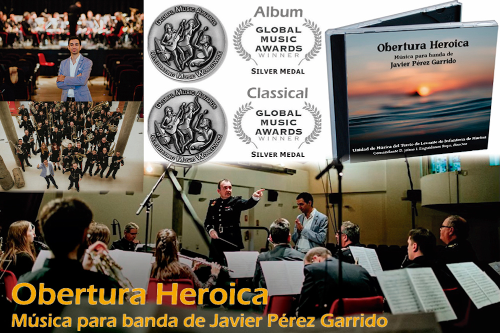 La música de este CD muestra una cuidada selección de 13 obras para banda compuestas principalmente en la ciudad de Cartagena entre los años 2003 y 2017, muchas de ellas premiadas en importantes concursos de composición nacionales e internacionales, abordando una gran variedad de estilos y formas musicales destinadas a un público amplio y variado. Por su parte, el compositor Javier Pérez Garrido vuelve a ser reconocido a través de esta importante organización estadounidense que le ha brindado un total de seis medallas incluyendo un oro (2014 -Fantasía-), cuatro platas (2015 -Tango Suite-, 2016 -Concertino de los Filabres- y 2021 -Obertura Heroica-) y un bronce (2014 -Fanfarria-).