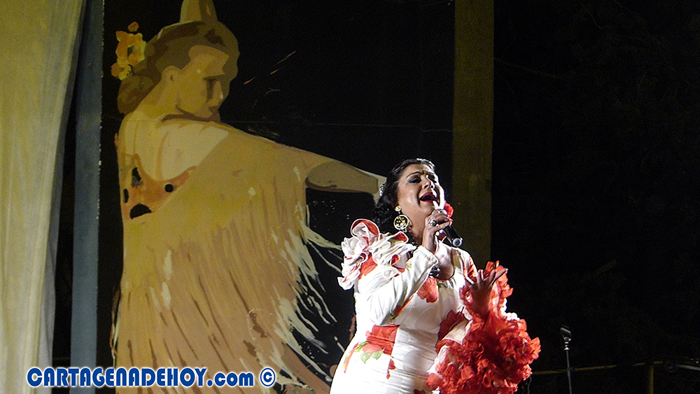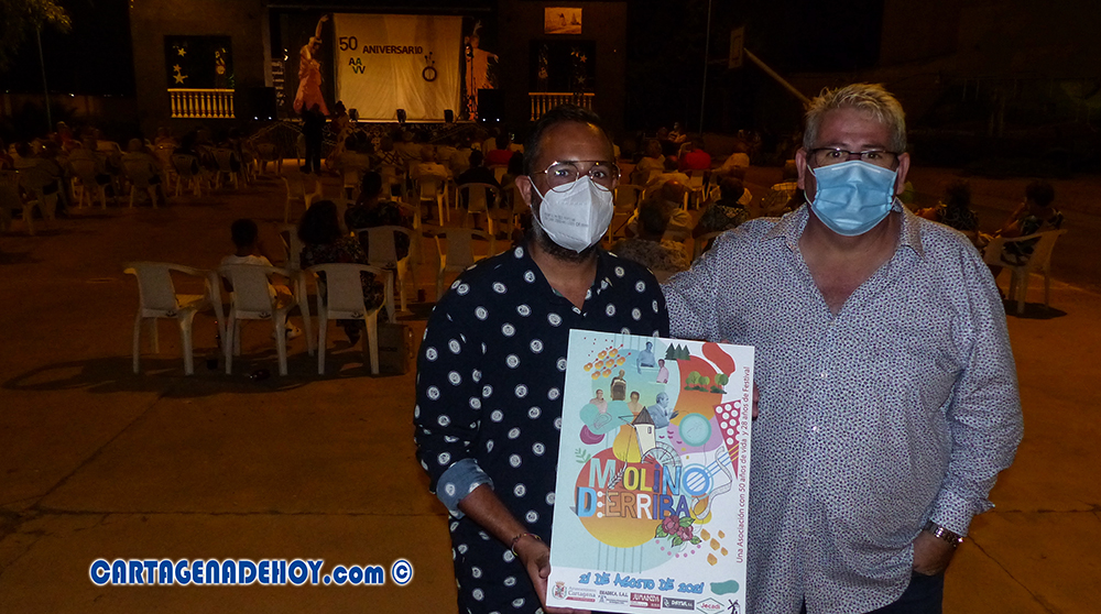 Después comenzó el espectáculo bajo la luna llena, testigo del regreso de la canción española al 'Palacio de la copla', como también se identifica de forma cariñosa al polideportivo de Molino Derribao, siendo María José Romero, la última ganador del 'Molino de plata', y el cordobés Abraham Ruiz, popular por sus presencias en el Canal Sur, los que pusieron su magníficas voces en este terreno musical. La noche la completo la presencia de los monologuistas murcianos Vicent y JC.