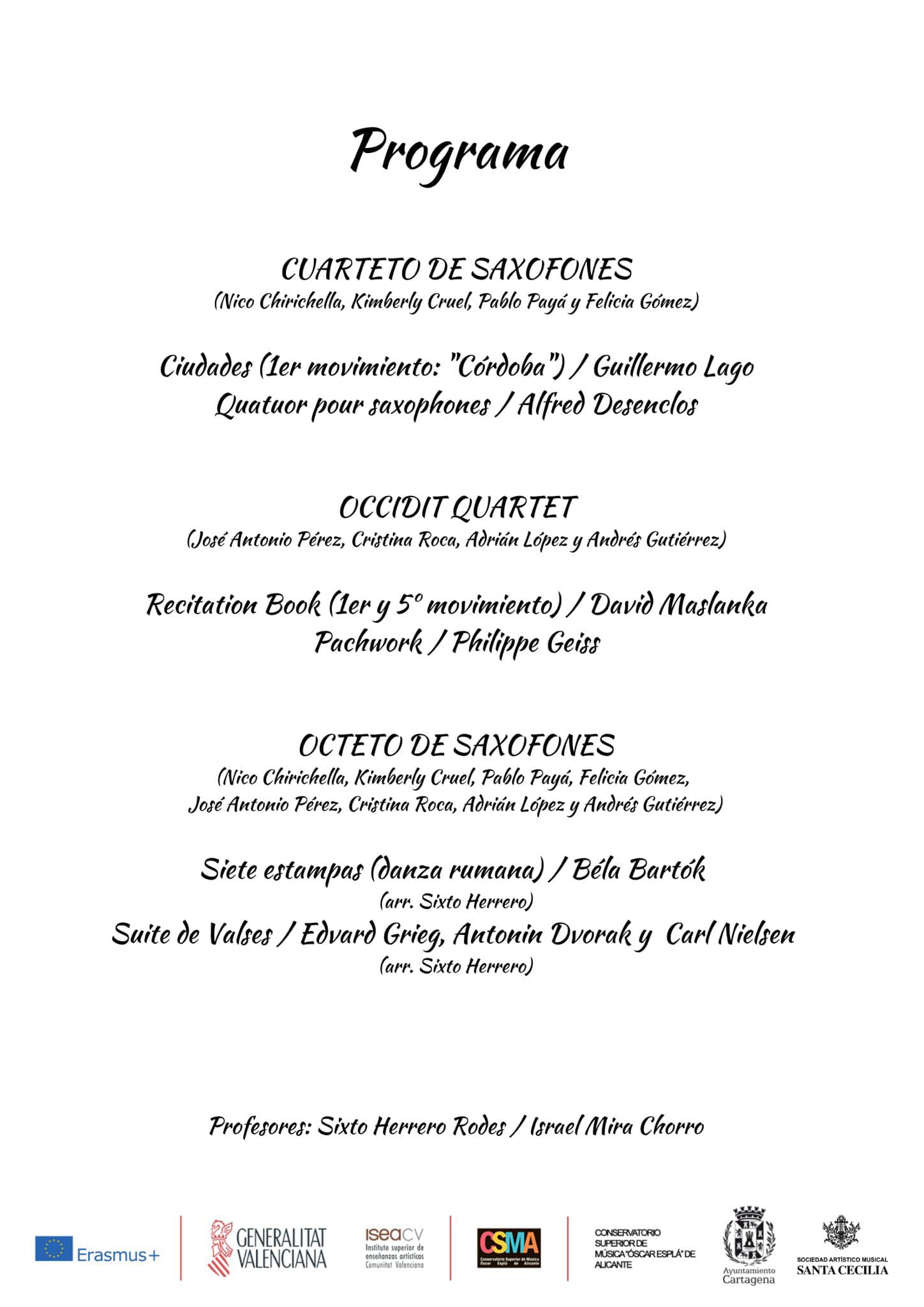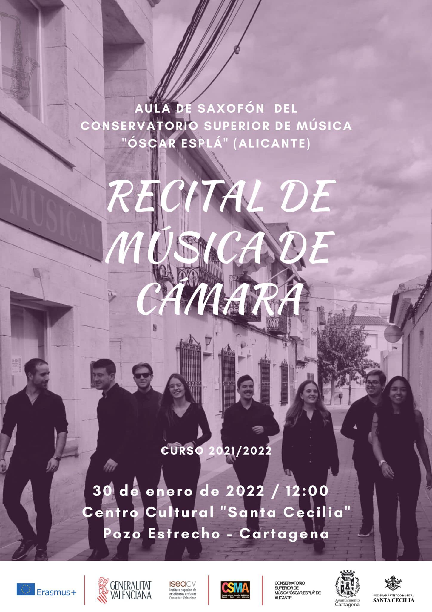 El próximo domingo 30 de enero se realizará un recital de música de Cámara en el Centro Cultural de Pozo Estrecho. El recital correrá a cargo del alumnado del Aula de Saxofón del Conservatorio Superior “Óscar Esplá” de Alicante. Será a las 12 horas.