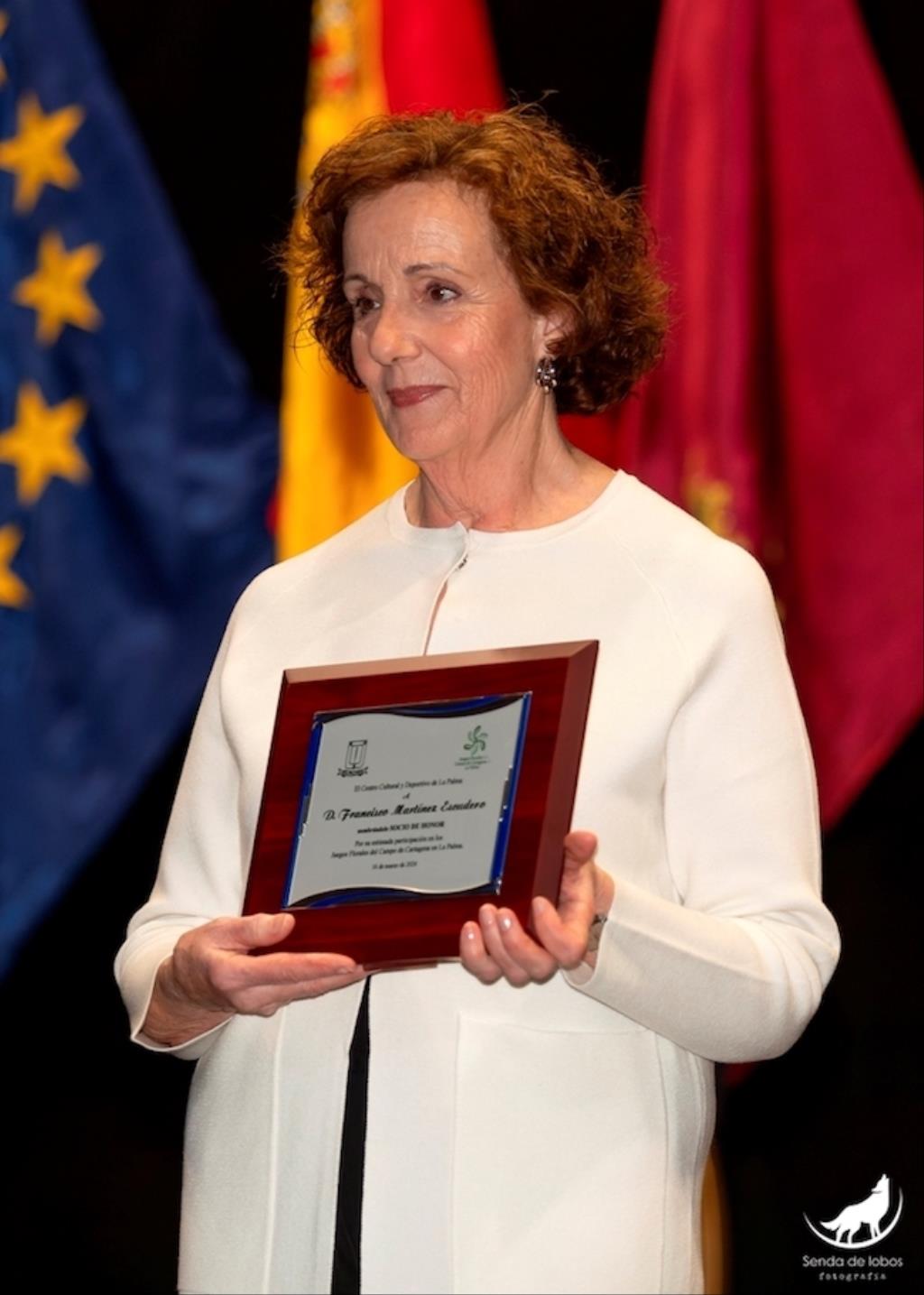 A continuación, tuvo lugar el momento más emotivo de la velada, pues se procedió a rendir homenaje a Francisco Martínez Escudero, poeta y miembro del jurado del los Juegos Florales entre los años 1984 y 2016. Para ello, su esposa, hijas y nietos subieron al escenario y recitaron varias poesías en recuerdo de este ilustre palmesano. También se les entregó una placa conmemorativa.