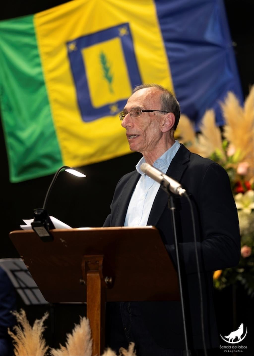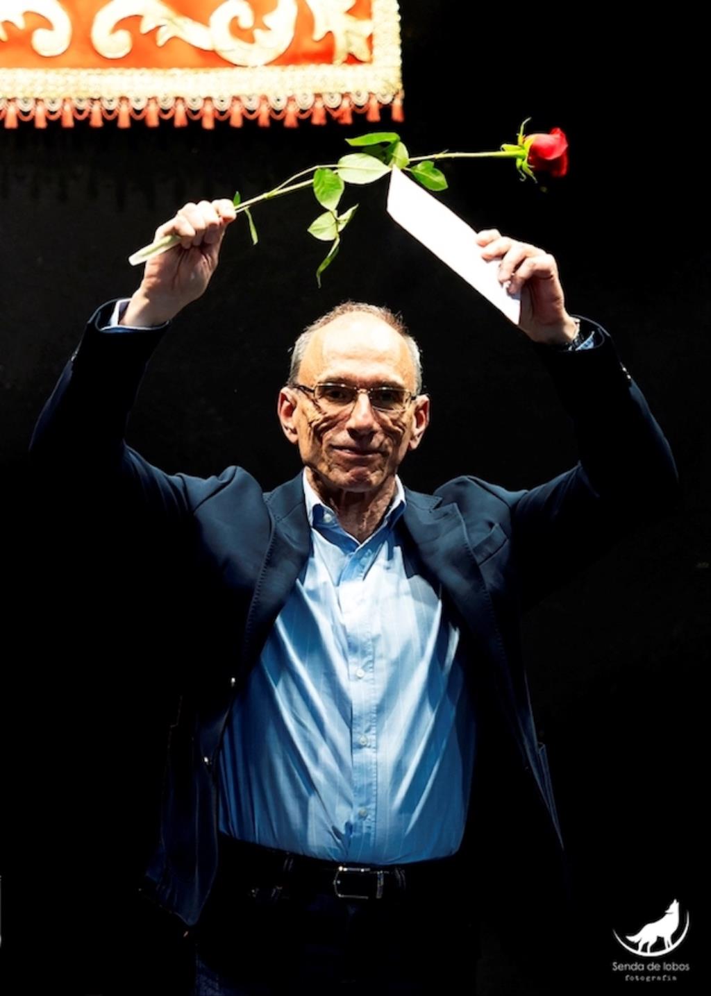 Y, por fin, llegó el momento de entregar el premio de los `L Juegos Florales del Campo de Cartagena’. El secretario, José López González, dio lectura del acta del jurado, anunciando el nombre del poeta premiado: Ricardo Espín Pérez-Santamarina, por su trabajo “Puerto Ensoñado”, bajo el lema “Nereida”. El galardonado subió al escenario y recibió la Flor Natural, procediendo a la lectura del texto laureado. Hay que destacar que Pérez-Santamarina ya ganó los Juegos Florales en el año 2019, lo cual lo consolida como un excelente poeta.