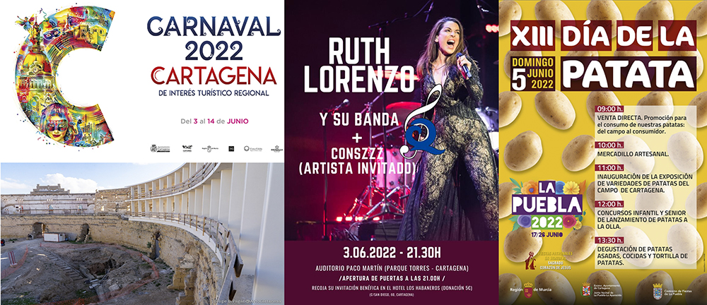 Destacan el inicio del Carnaval de Cartagena y la actuación de Ruth Lorenzo en concierto benéfico en el Parque de Torres destacan en un fin de semana que también ofrece este sábado el inicio de las visitas al Anfiteatro Romano, mientras que el domingo La Puebla celebra el ‘Día de la patata’.