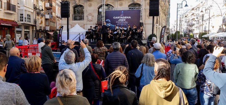 La plaza del Icue se convirtió en una gran fiesta con la música de la ‘Big Band’ del Conservatorio de Música en una magnífica jornada del 41 Festival de Jazz de Cartagena que cerró el magistral guitarrista Al Di Meola en el Nuevo Teatro Circo.