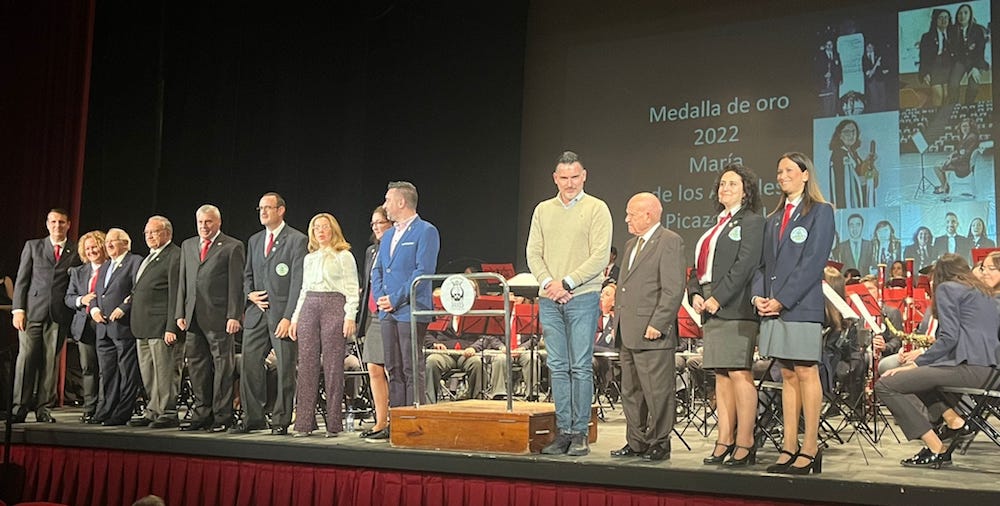 Entre los asistentes se encontraban los concejales de Festejos y de Cultura, respectivamente, Juan Pedro Torralba y Carlos Piñana, además de la vicealcaldesa, Ana Belén Castejón, quien agradeció la deferencia de designarla para hacer entrega del galardón a María Ángeles Picazo con el anuncio de que, desde la concejalía de Cultura del Ayuntamiento de Cartagena, se va a aumentar en un 54% la subvención para las bandas de música del municipio. “Gracias por permitidme ser parte de este acto tan entrañable y por el maravilloso concierto que nos habéis regalado esta tarde. No quiero irme sin daros una buena noticia y es que para este 2023, en el Ayuntamiento de Cartagena hemos aumentado hasta llegar a 130.000 euros la subvención para las bandas de música del municipio”, anunció Castejón.