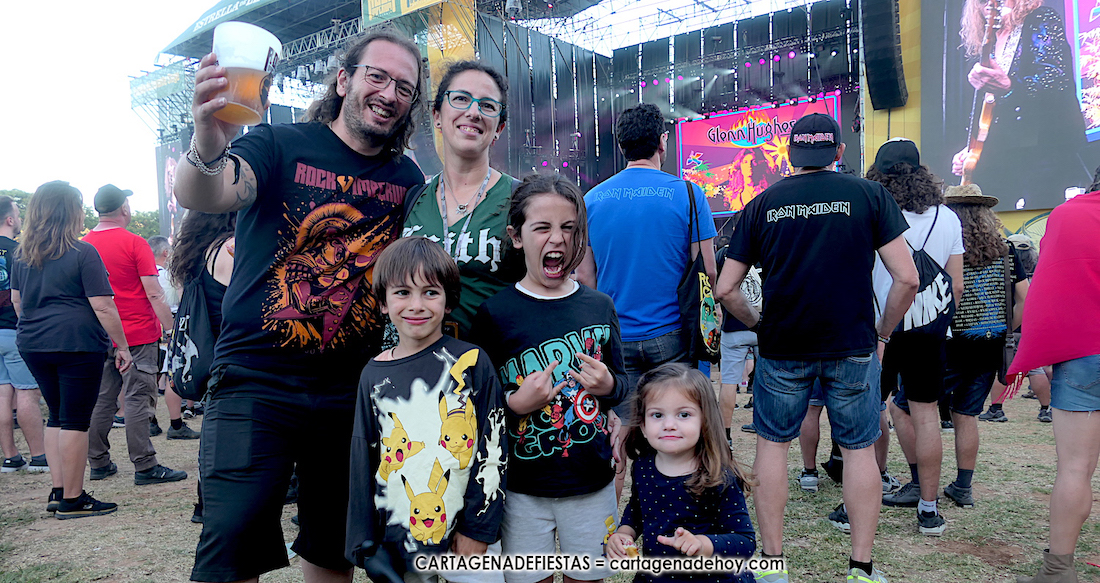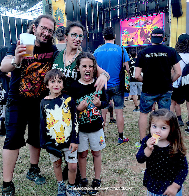 Se llama Carolina y su crecimiento avanza a la par que el festival. La pequeña tiene tres años de edad y ya acumula tres citas rockeras de Cartagena en su vida. En la foto se la observa con sus dos hermanos (de 6 y 8 ‘primaveras’ de edad) y sus padres, Edu y Leticia, quienes vienen cada año desde la sevillana localidad de Utrera y que se alojan en Cabo de Palos.