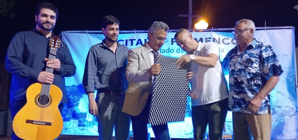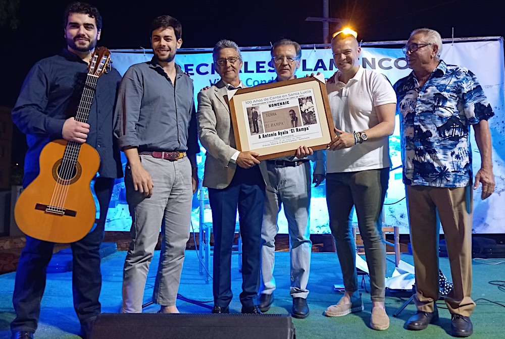 Al finalizar, “El Rampa” recibió un cuadro de manos del concejal de Cultura, Nacho Jáudenes, en el que se conmemora el centenario del concurso de cante flamenco de Santa Lucía y en el que se ha homenajeado a su abuelo.