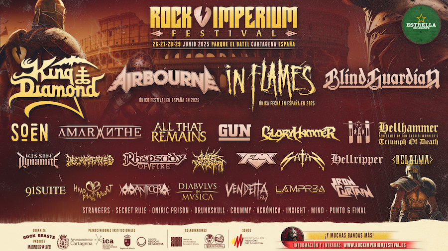 El festival Rock Imperium de Cartagena confirma a King Diamond, Blind Guardian y los cartageneros Mind para su edición de 2025. Los dos primeros nombres son dos verdaderas instituciones dentro de la historia del metal, mientras que la banda local se inspira en diversas influencias, sin encasillarse, experimentando distintos géneros con libertad a través de la percusión de José Víctor Cortes, el bajo de Alejandro Domínguez, la guitarra de Joshua Aguilera y la voz de Pedro Asensio.