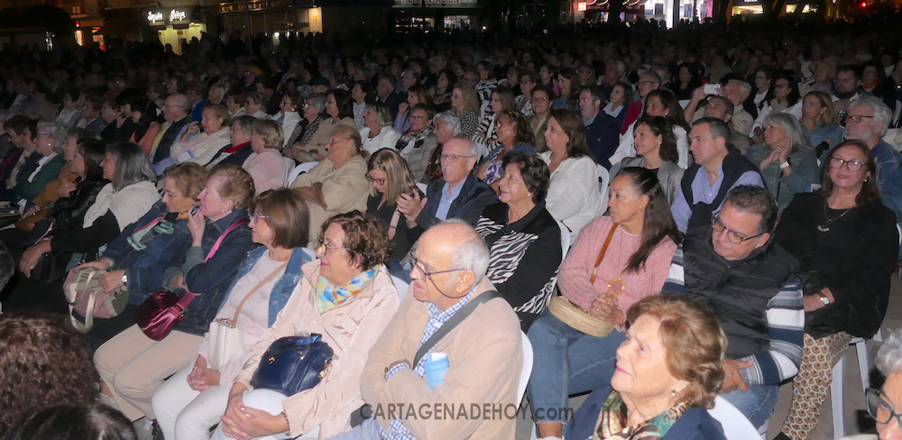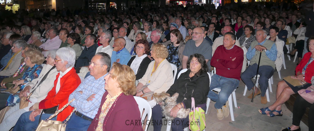 Y dos, por la cantidad de gente que atrajo, ocupando todas las sillas y quedando unos cientos de asistentes de pie... y pese a coincidir en parte con la disputa del clásico español de fútbol Real Madrid-Barcelona. Por cierto, entre los presentes pudimos ver a la alcaldesa, Noelia Arroyo, y al edil de Cultura, Nacho Jáudenes.