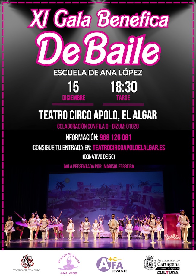 La décimo primera edición de la escuela de Ana López fija su fecha de celebración para el 15 de diciembre en el Teatro Circo Apolo de El Algar. Será presentada por Marisol Ferreira y la recaudació se destinará a la asociación de familiares de personas con enfermedades neurodegenerativas y prevención de envejecimiento patológico (AFA Levante)