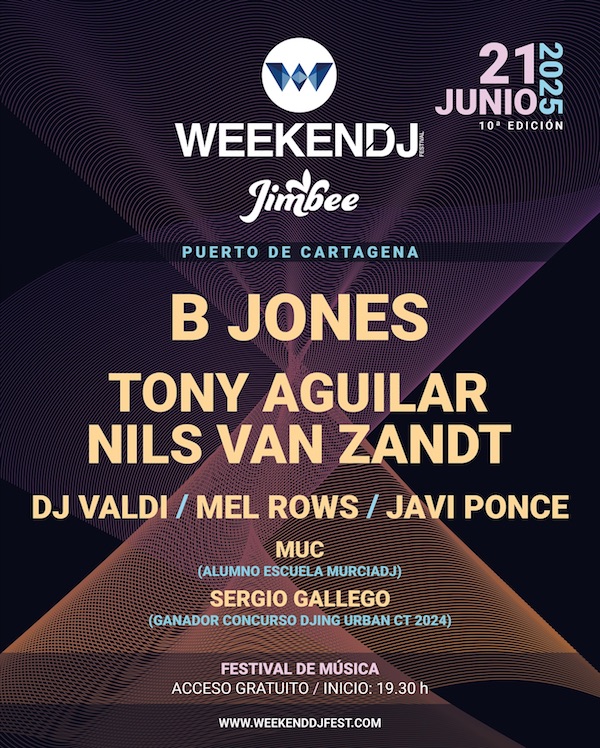 Aquella novedosa iniciativa que, de forma muy humilde, se estrenó en 2015 en Cartagena se ha convertido en una de las grandes alternativas del calendario musical de Cartagena cada año fruto al buen hacer de la familia Hurtado Borrego junto al apoyo recibido por amigos y empresas, convirtiéndose cada celebración en una multitudinaria fiesta que ha contado con varios escenarios, siendo el actual y estable la explanada del puerto, donde más de diez mil almas han concurrido en los últimos años. Discoteca Puerto Trips fue el marco donde se celebró el cumpleaños 10 de 'WeekenDJ Fest', con un acto que llevó el periodista Juan Pedro Hurtado, pilar de la organización junto a Ana Borrego (directora) y Cristina Hurtado (coordinadora), dentro de un magnífico equipo de colaboradores. Se llevó a cabo la proyección de lo acaecido en la última década en Cartagena, además de resaltar los vínculos de fuerte amistad que se han generado en este tiempo y de dirigirse a los numerosos presentes otras personas que forman parte del elenco organizativo y de patrocinio del festival, entre los que figuró la edil Cristina Mora. No faltó el soplido conjunto a una carta con las velas del décimo cumpleaños.