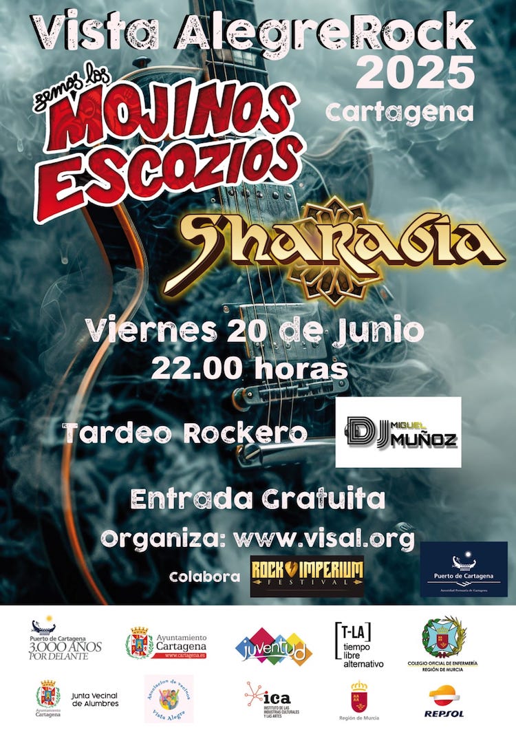 'Vista AlegreRock' es un tradicional evento musical desde hace años en la Semana Cultural de Vista Alegre, celebrándose cada dos años, pues Colectivo Visal no tiene suficientes recursos para organizarlo de forma anual. Hace dos ejercicios estuvo Obús en el escenario de la plaza de los Reyes Católicos con motivo de las XXXIX jornadas culturales y en la 41 tomará el relevo 'Semos los Mojinos Escozíos', que lidera 'El Sevilla'. La entrada sigue siendo gratuita y para que Visal pueda costear esta actuación y la de Sharabia, además de ayudas, sus integrantes recurren a la venta de camisetas, que ya se pueden adquirir en 'Ziclo', y a la caja que se haga en la noche del 20 de junio en la barra que se instalará cerca del escenario.