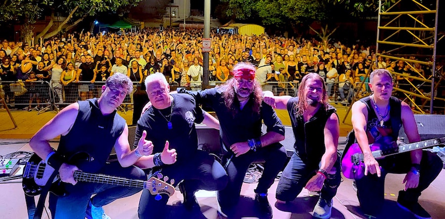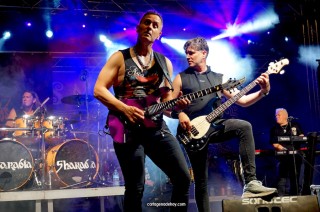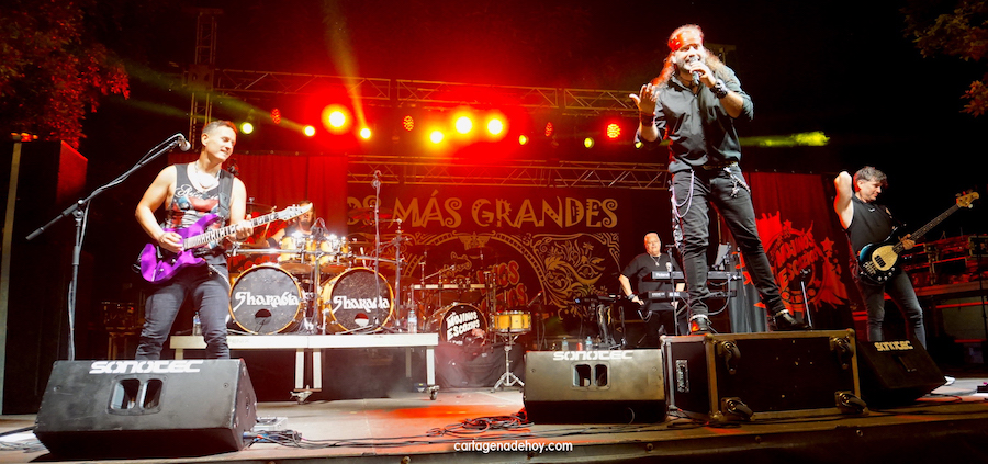 La gran jornada musical nocturna que tuvo lugar en la plaza de los Reyes Católicos tuvo dos capítulos, siendo el primero protagonizado por 'Sharabia', una banda cartagenera que arrastra seguidores por donde actúa, como se pudo comprobar dentro de la multitud que acudió a Vista Alegre, la mayoría atraídos por 'Mojios Escozíos', pero que enseguida se vieron 'enganchados' al ritmo rockero del grupo que lidera, como vocalista, Juan Arroyo 'Chiqui', que ofreció temas propios con otros versionados (siempre en español) de bandas como 'Medina Azahara' y 'Scorpions' que se han convertido en estandartes de sus actuaciones.