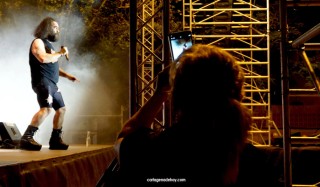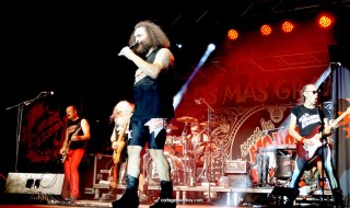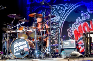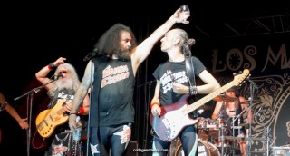 Cuando quedaban cinco minutos para la medianoche, y tras acabar 'Sharabia' su actuación (pinchar aquí), subieron al escenario, del que se bajaron una hora y veinte minutos más tarde después de 'darlo todo', como se suele decir (y fue cierto), para que los asistentes disfrutasen en la parada de la gira 'Los más grandes' que los ahora llamados 'Semos Los Mojinos Escozíos' llevaron a cabo en Vista Alegre, donde ofrecieron una mayoría de temas conocidos (también algunos novedosos) ante una multitud de todas las edades, pues pudimos ver personas de muy avanzada edad con camisetas negras temáticas para la ocasión como chavales que se sabían las letras, junto a otros que empezaban a ser 'captados' para ser su público de los próximos años.