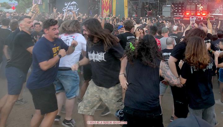 Otro aspecto a destacar que refleja lo entregado del público y su complicidad con los artistas es que se vieron las populares acciones de ‘mosh pit’ y circle pit’. El ‘mosh’ es la ‘olla o pozo’, el hueco o espacio que se genera entre un amplio grupo de asistentes a base de los tradicionales empujones, saltos, patadas o acrobacias (todo de buen rollo), siendo tradicional en los espectadores metaleros y punkis. Por su parte, ‘circle pit’ (pozo circular) es danzar corriendo entre la gente en un círculo al que se van unido los demás. Es vez fue más 'olla' que 'pozo'.