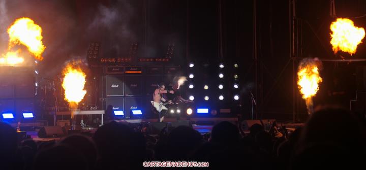 Se les señalan como titanes del 'hard rock' ('roca dura' es su traducción) australiano, pero a un servidor le pareció más eso de la música rocosa con rollo, es decir, 'rock and roll', pues sus canciones te hacía mover el esqueleto con facilidad y hasta tatarearlas enseguida, como es habitual en los estribillos rockandrolleros. Espectacular y muy agradable de principio a fin en la hora y media de concierto desde un escenario con chorros de fuego y constante juego de luces.