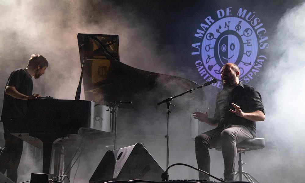 La vigésimo sexta edición del gran festival cartagenero, que este año está dedicado a España, afronta su recta final en los escenarios de auditorio 'Paco Martín' del Parque de Torres, Terraza de El Batel, Real Club de Regatas y el patio del antiguo CIM ‘Escenario Repsol’, al que corresponde la imagen adjunta del concierto de Raúl Refree y Niño de Elche.