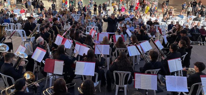 El aniversario de plata del ciclo literario que ha tenido lugar durante una semana en Cartagena tuvo un epílogo espectacular con el concierto ofrecido por la Agrupación Musical Sauces con cuatro corales ante ciento de espectadores que abarrotaron la plaza del Icue.