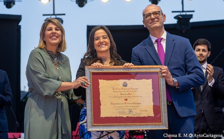 El centro de formación musical, que cumple su primer siglo de andadura, forma parte de los elegidos por el gobierno regional para las distinciones que se entregará en e acto institucional del 9 de junio, que se celebrará en la ciudad de Murcia. En la foto, su directora, María José Castaño, recogiendo hace dos semanas la concesión de la 'Medalla de oro de Cartagena'