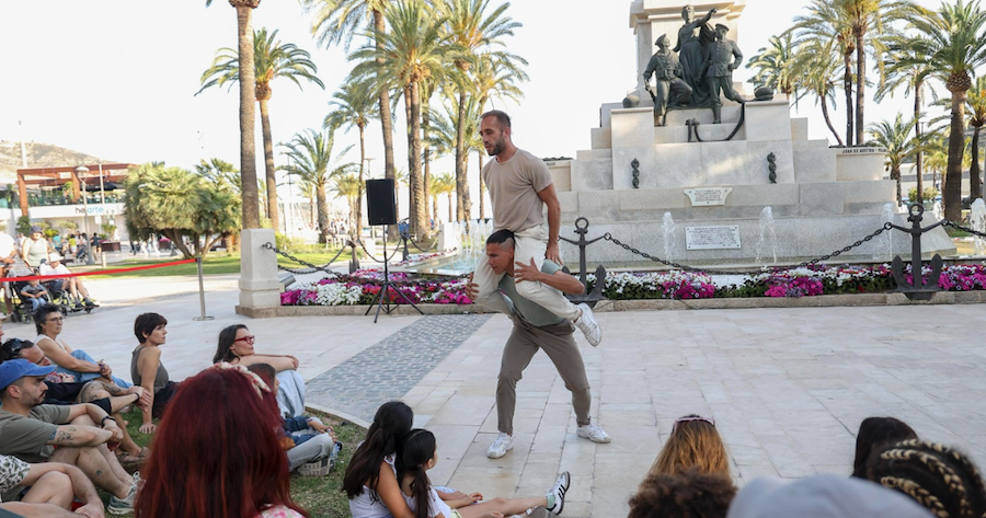El centro de Cartagena fue escenario del movimiento del festival 'MuDanzas', ofreciéndose más de diez propuestas de danza contemporánea, siendo los escenarios las plazas del Ayuntamiento y de Héroes de Cavite.