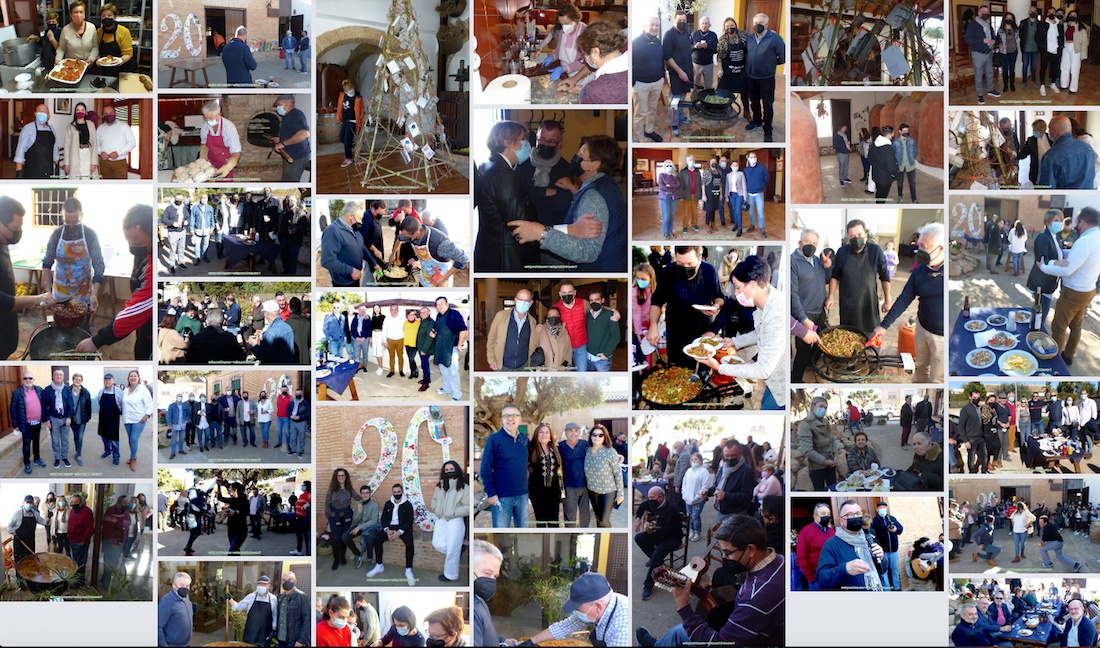 Como he apuntado antes, las pláticas se suceden para hablar 'de todo' y siempre con 'buen rollo', pero quiero centrarme en la efeméride, el 20 aniversario. Hemos podido conocer la ilusión del proyecto que derivó en la casa, de cómo cinco componentes del grupo avalaron el préstamo con el apoyo del grupo, de las prisas por acabar en una fecha concreta para no perder subvenciones importantes, de cómo después se amplió el espacio con una bodega y más estancias, de los ambiciosos proyectos futuros... y de algunas anécdotas, como la que tuvo lugar el día de la puesta de largo de 2001. Esa misma tarde se pintó el exterior de la casa, incluidos los polletes, y resulta que el chófer de la entonces primera autoridad municipal no se dio cuenta de que la pintura estaba fresca y se sentó, apoderándose el color blanco de sus vestimentas.
