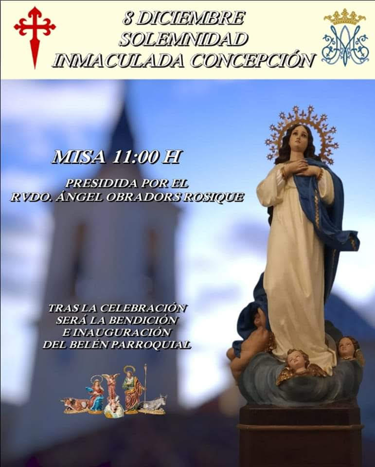 La parroquia que lleva el nombre del apóstol en Santa Lucía celebra esta mañana (11 horas) una misa en honor a la Inmaculada Concepción, para a su conclusión tener lugar la bendición del Nacimiento.