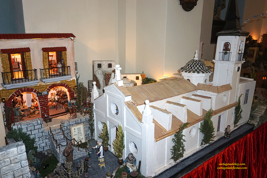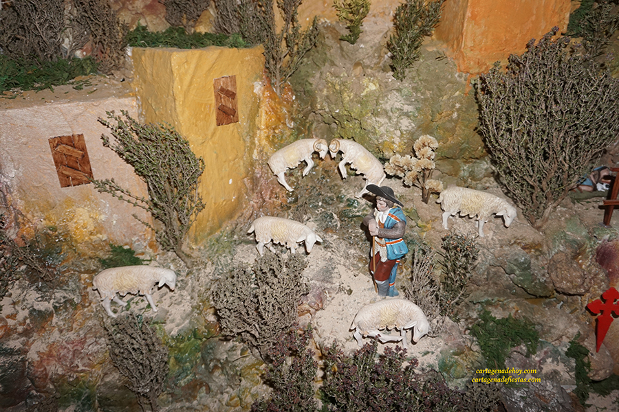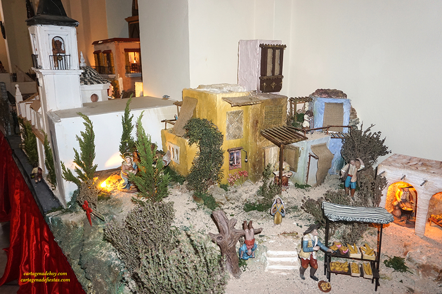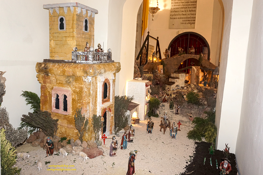 Belén con elementos del barrio, como la iglesia, el Pinacho y el puerto con barcos latinos. Además se invita a los que acudan a jugar buscando un 'ratón' que está escondido: