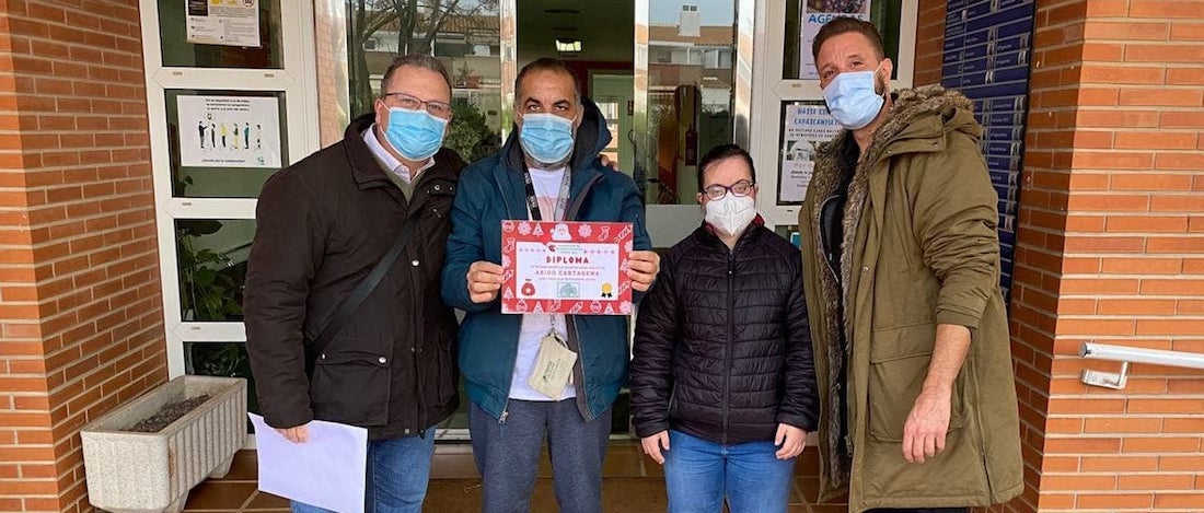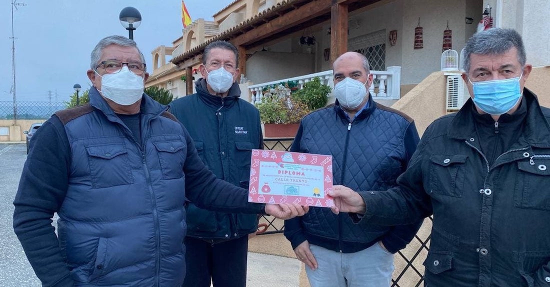 La asociación santianera ha entregado diplomas a los residentes de la calle Trento del Residencial Zahira por su decoración navideño, además del centro Asido (en la foto con el árbol que han enriquecido con adornos que han elaborado) y del colegio Miralmonte por sus labores educativas y su enorme compromiso social.