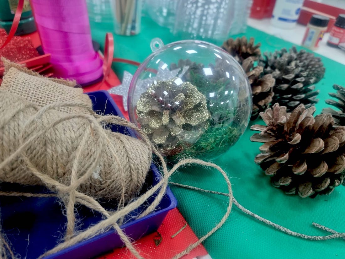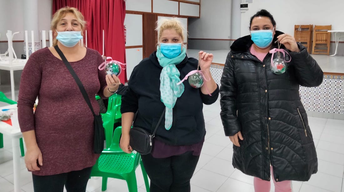 La coordinadora de barrio, a través de Rascasa, Cáritas Jaloke y la asociación vecinal, organizó un taller en el local social en el que vecinos de diferentes edades crearon bolas, cajitas y otros elementos típicos de estas fechas.