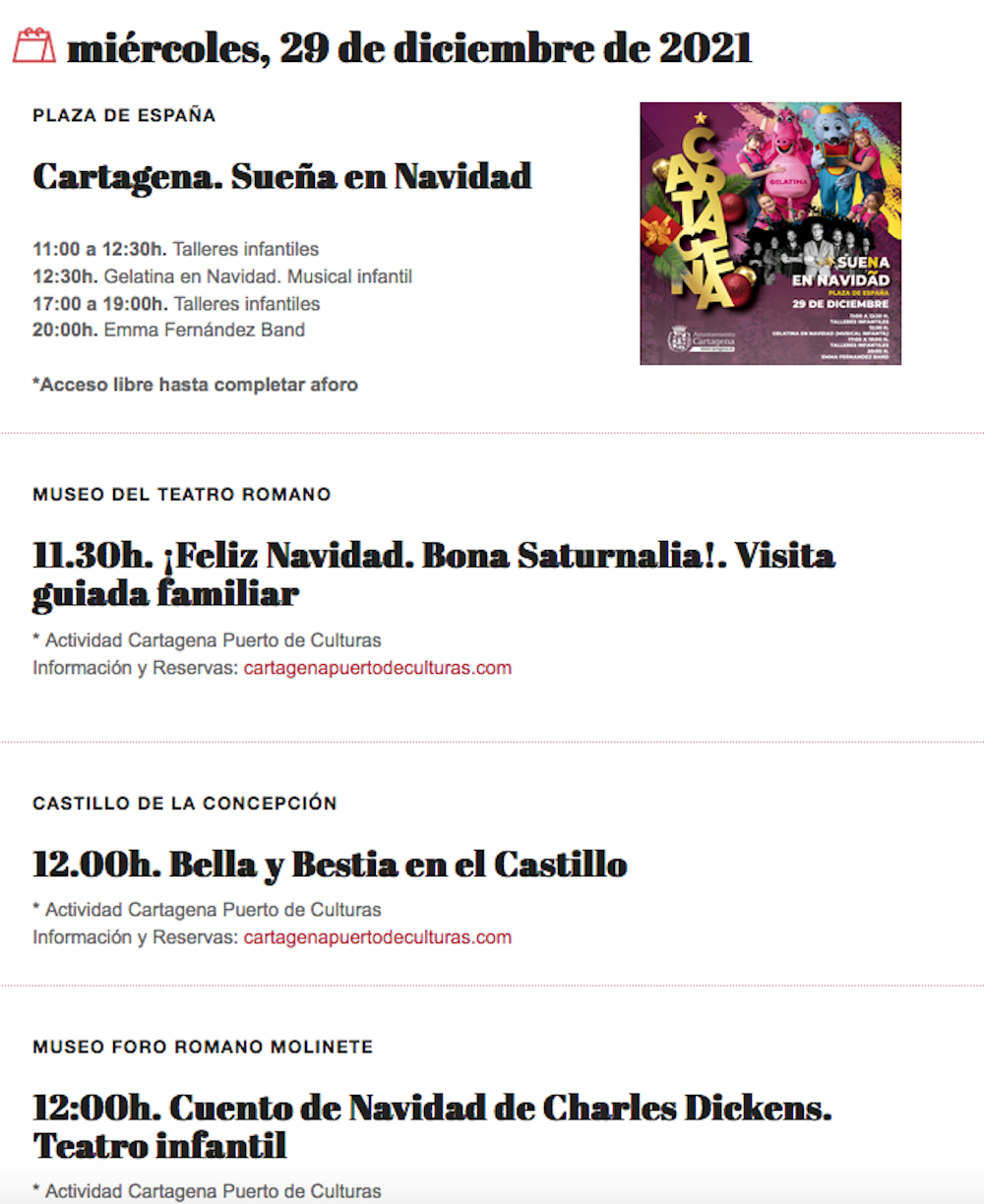 Pinchando en el bánner 'Vive la Navidad en Cartagena', que el Ayuntamiento ha colocado en la cabecera de este periódico, se accede en cada momento a la agenda de actividades de cualquier día navideño.