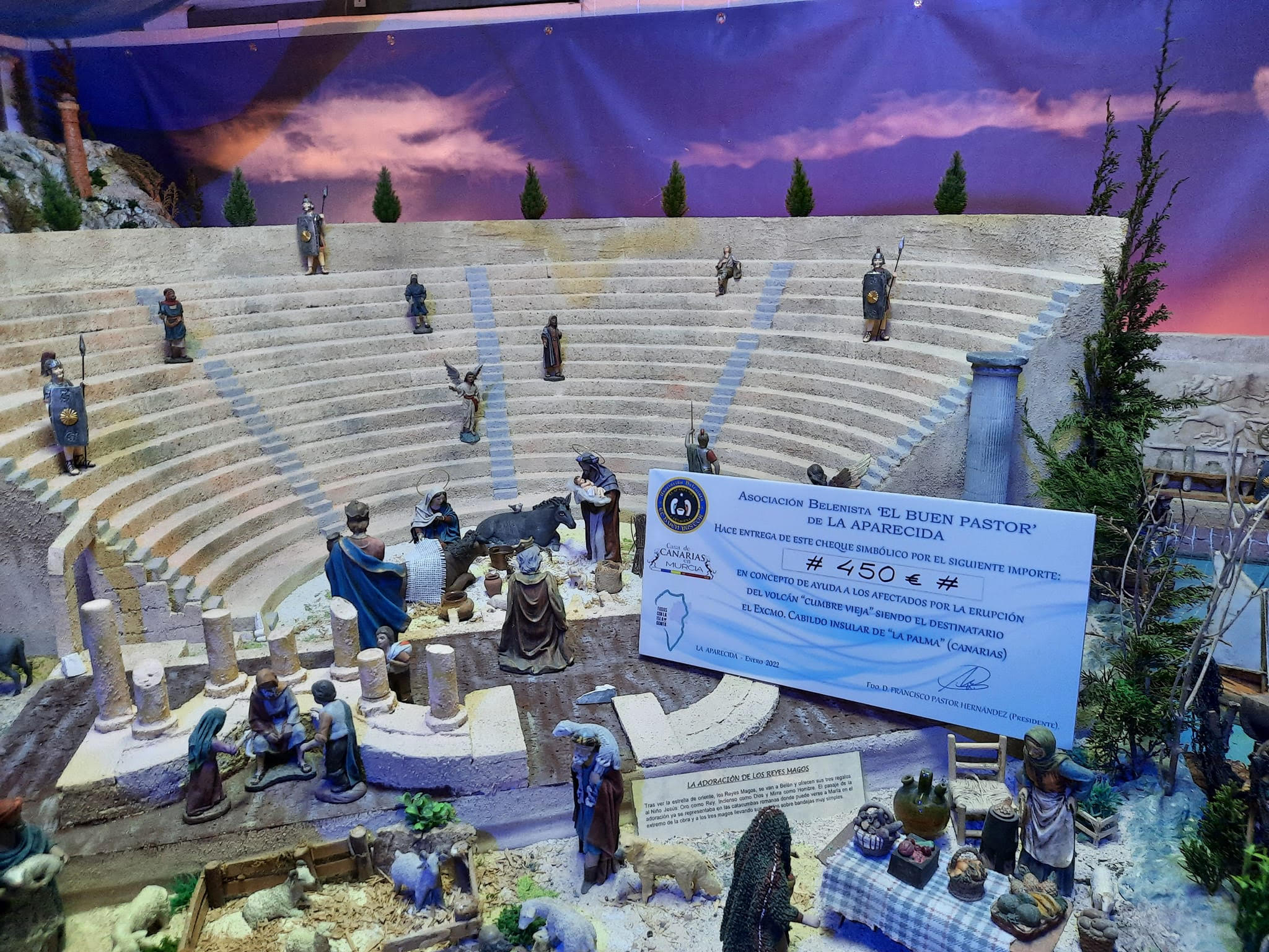 La asociación belenista El Buen Pastor de La Aparecida entrega un donativo a los damnificados por la erupción, durante unos dos meses, del volcán  de la isla canaria de La Palma, para ayudarles en la reconstrucción.