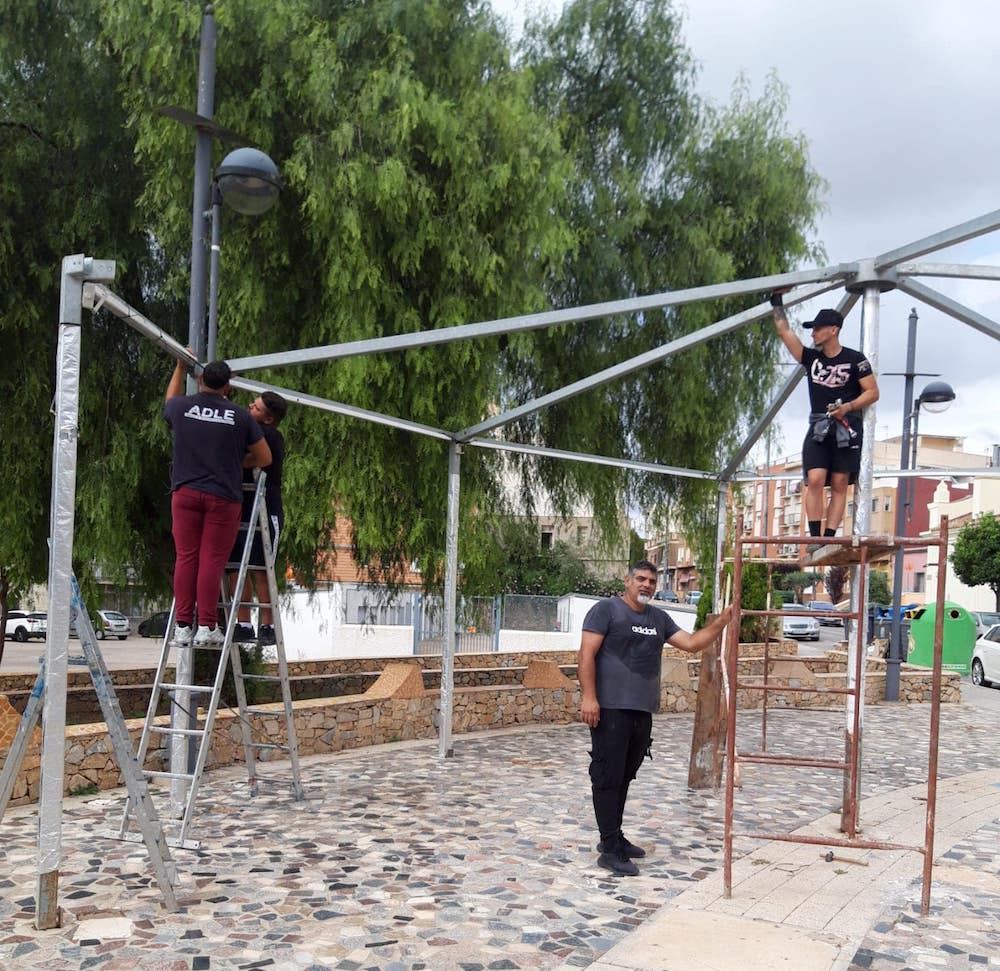 La asociación deportiva y cultura 'El Pinacho' ha iniciado hoy la instalación del gran complejo de Navidad que, además de diversas casetas y figuras, entre otros elementos, acoge en su interior el tradicional gran Belén en movimiento.