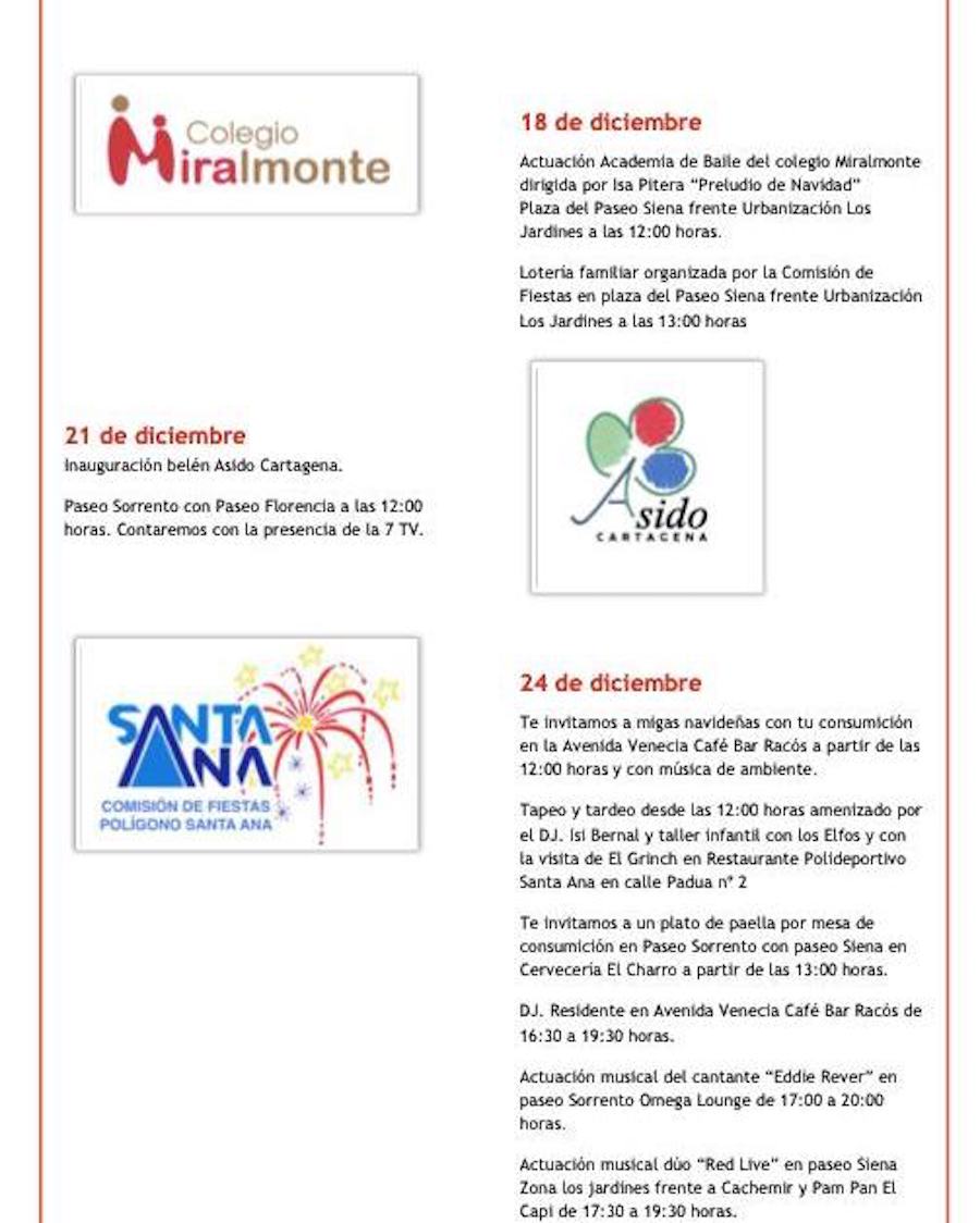 La segunda edición del encuentro organizado por Crear-T se desarrollará hoy y mañana en el paseo Sorrento, dentro de unas propuestas santianeras para vecinos y visitantes que se extenderán hasta el 2 de enero y que incluirán también teatro, pasacalles de charangas y gaiteros, tren turístico, bailes, el belén de Asido, migas navideñas, tardeo, actuaciones musicales, talleres, fiesta de Nochevieja, etc. Organizan la comisión de fiestas de la barriada, la Entidad de Conservación y el Ayuntamiento de Cartagena, con la colaboración de establecimientos locales, además de Crear-T y del colegio Miralmonte.