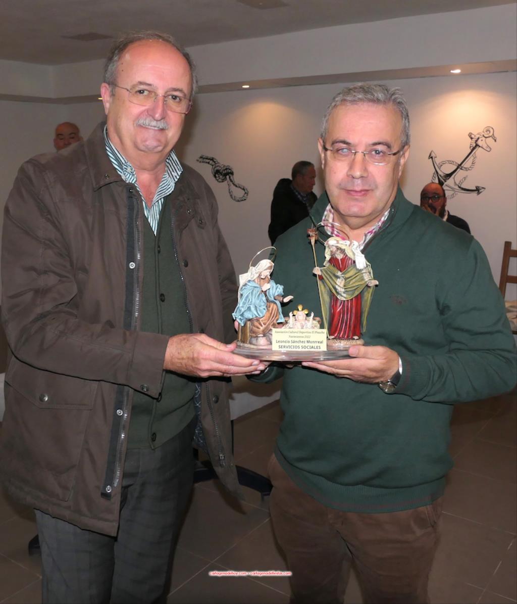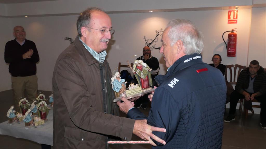 Estamos en unos días de inestabilidad climática y la mañana del domingo nos ha recibido con la lluvia amenazante, tras descargar en la madrugada, y un tiempo desapacible de frío y viento. La solución que han buscado los inquietos dirigentes de la Asociación Deportiva y Cultural ‘El Pinacho’ ha sido trasladar el primer capítulo de la jornada a cubierto, celebrándose en una de las salas de la marisquería ‘La Marina’, con Francisco Torres como presentador del acto con el que estos ‘pinacheros’ distinguen a personas que colaboran con sus numerosas actividades y a los que apuestan por las tradiciones, además de entregar los nombramientos de honor del Belén de esta edición, la 29, pues fue en 1993 cuando se llevó a cabo el primer montaje, entonces mucho más pequeño que hacia lo que ha evolucionado año tras años.