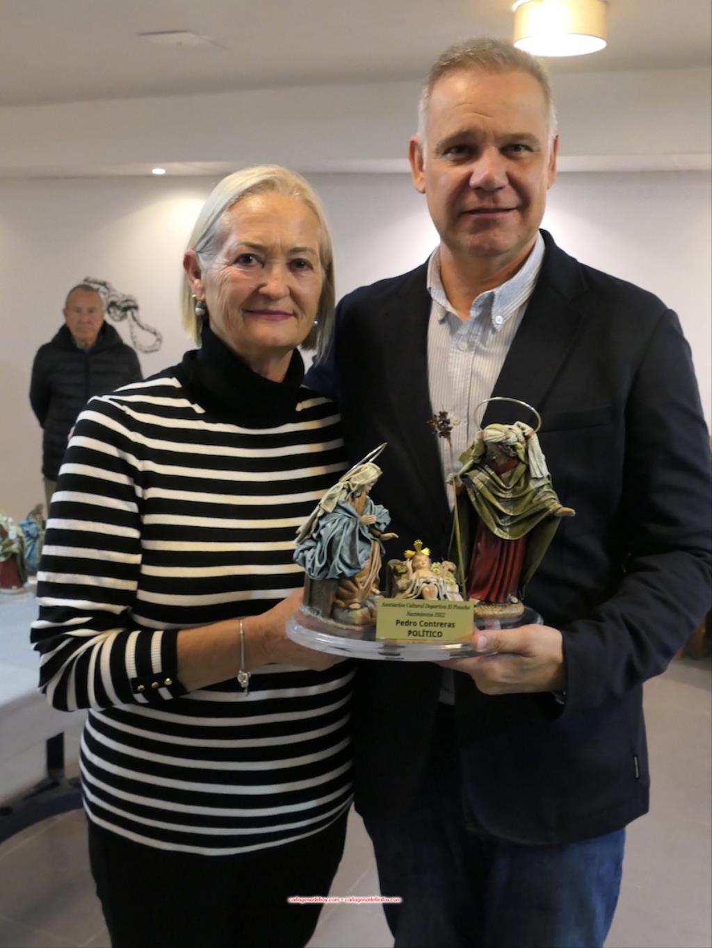 Ha sido novedad (y sorpresa) la incorporación de los premios ‘Reyes Magos’, también con figura artesanal de prestigioso belenista, siendo los primeros destinatarios: José Luis Sánchez Luengo y la presidenta de la ADC El Pinacho, Dolores García Giménez, siendo entregado por su esposo y vicepresidente, Manuel Torres Paisal.