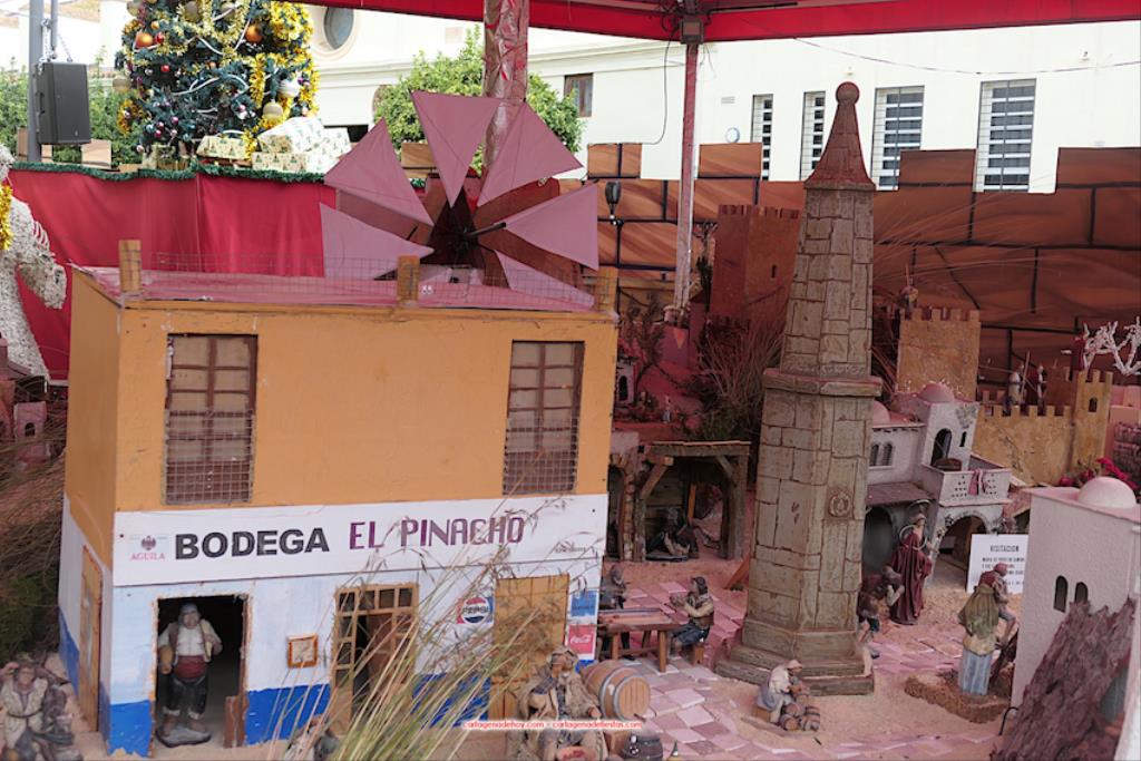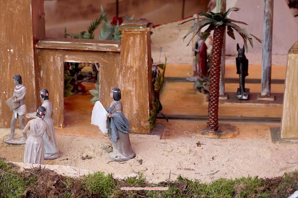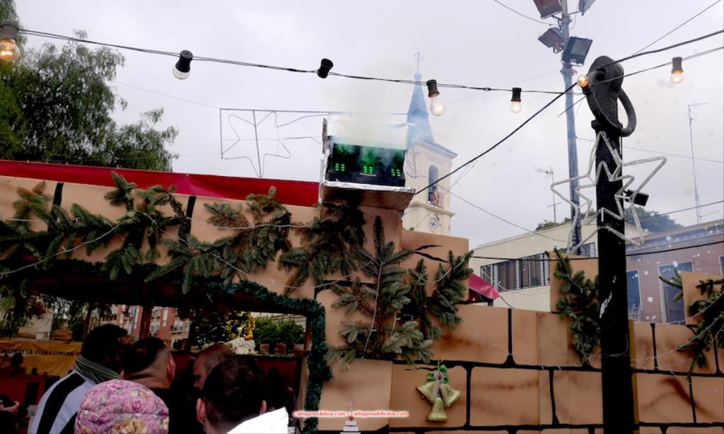 El segundo capítulo ha sido dentro de las murallas del poblado navideño. Tras la bendición religiosa del Belén, la madrina de este año, Rocío Rodríguez, ha actividad el sistema eléctrico que pone en funcionamiento la iluminación y a las ya cien figuras dotadas con movilidad dentro de las trescientas que forman el poblado, que este año ha vuelto a tener aumento de residentes. Novedad es el sistema instalado que representa el amanecer, el mediodía, la tarde, cuando cae la noche y la madrugada, que se potencia con los sonidos de gallo, grillos y bullicio de la gente, entre otros.