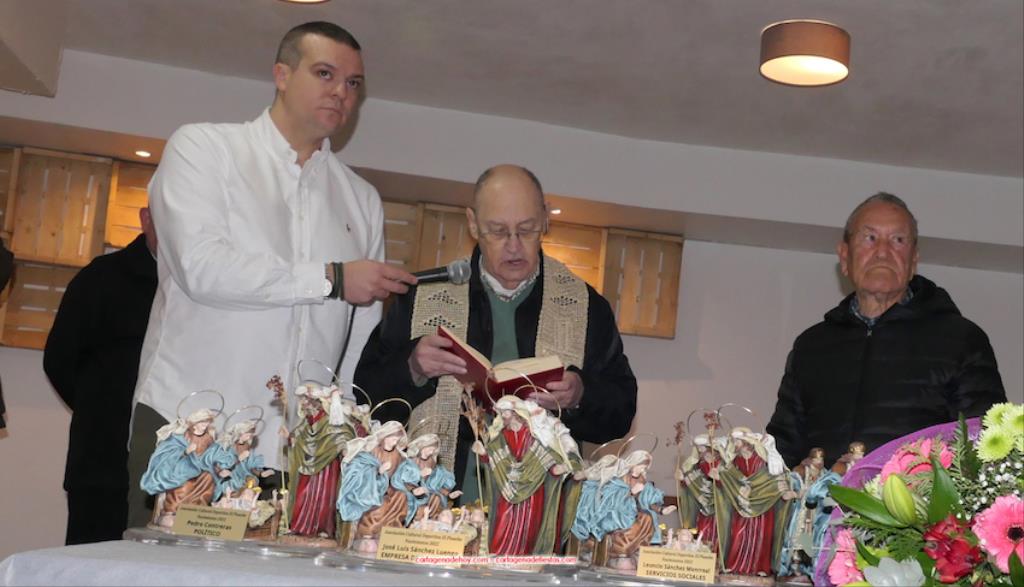Las entregas han sido efectuadas por Alberto Requena, Tomás Martínez Pagán, Isabel Hernández, Dolores García y el sacerdote Ángel Obradors, quien como párroco de la villa y condado ha bendecido las imágenes, además de recordar que Santa Lucía es el único núcleo de población de Cartagena que tiene dos belenes monumentales, el de la plaza de la Marina Española y el de la iglesia de Santiago Apóstol.