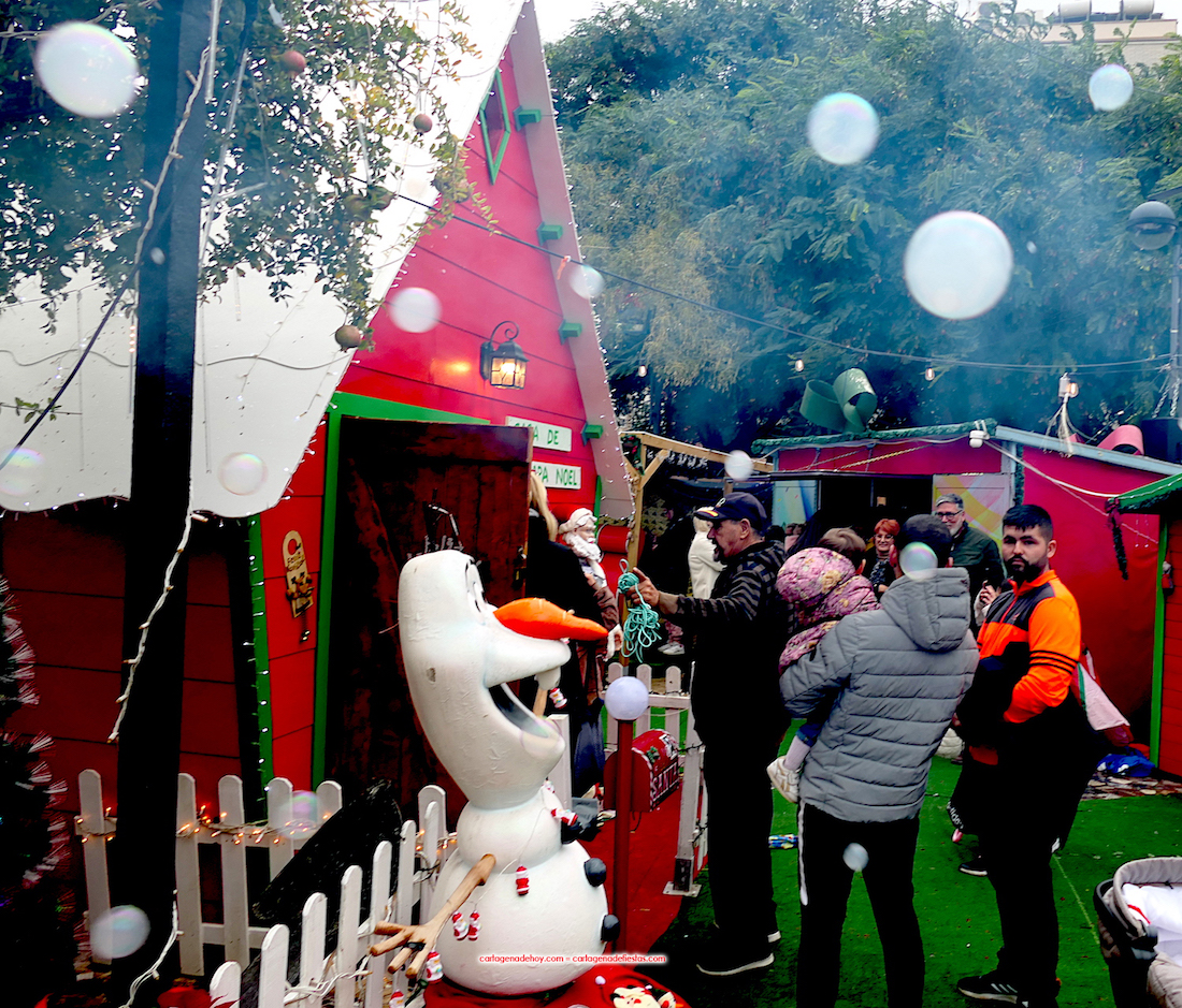 También se han abierto las visitas al poblado, donde hay una caseta más, dotada de un tobogán para diversión de los más pequeños. No han faltado la nieve y el lanzamiento de bolas blancas, además del sonido de villancicos. El tercer y último capítulo ha llegado a las nueve de la noche con el estreno de la iluminación que envuelve a todo el complejo navideño de la Villa y Condado de Santa Lucía. Por cierto, no se cobra entrada y se puede visitar hasta que acabe la Navidad.