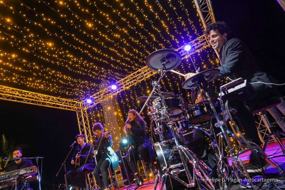 El grupo ‘Belter Souls’ actuó en Plaza Mayor anoche con temas pop vinculados a la Navidad, dentro del programa organizado por el Ayuntamiento de Cartagena y la Autoridad Portuaria.