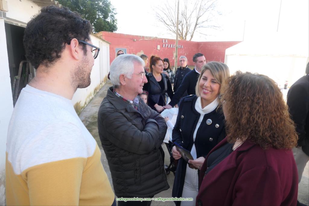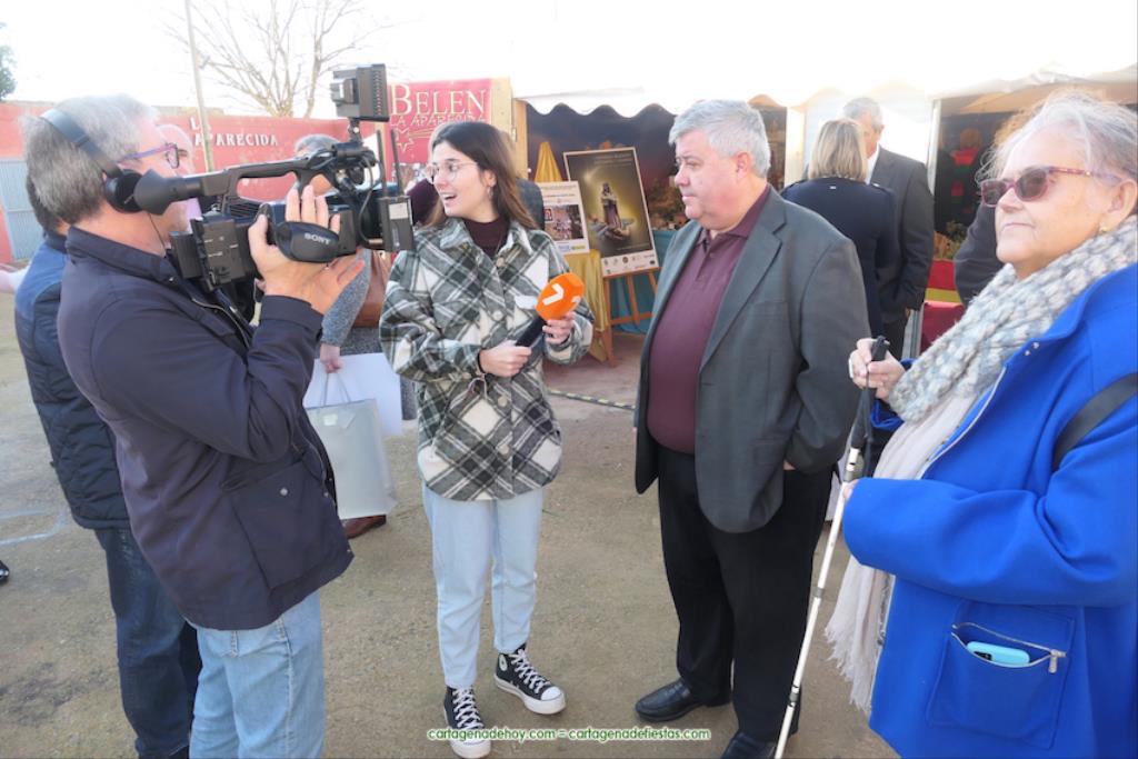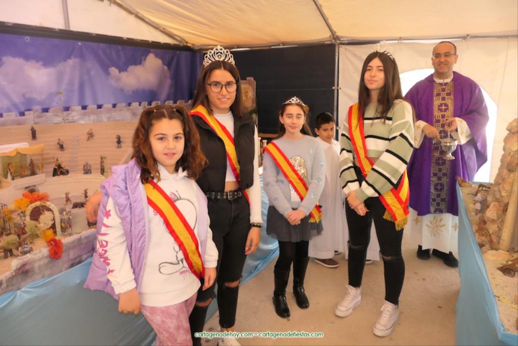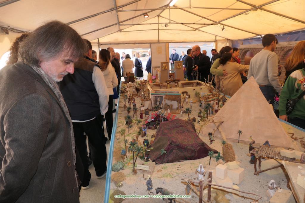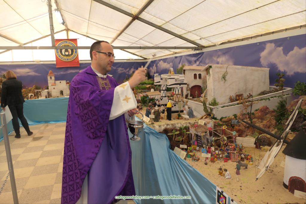Tras el acto de entrega de distinciones en el interior de la iglesia (del que daremos cuenta en otro artículo), el Belén, ubicado bajo las carpas del patio parroquial, ha sido bendecido por el párroco e inaugurado por la alcaldesa, Noelia Arroyo, en un acto que ha contado también con la presencia de los concejales Juan Pedro Torralba y Enrique Pérez, además del presidente de la asociación de vecinos, Francisco José Martínez; de los presidentes de las juntas vecinales municipales de La Puebla-La Aparecida, Juan Manuel Ayaso, y de La Palma, Pedro Obradors; del presidente de la Federación de Tropas y Legiones, José Antonio Meca; del candidato del Partido Cartagenerista, Salvador Lara; del pintor Pedro Pérez Casanova, del presidente de la ONCE de Cartagena…
